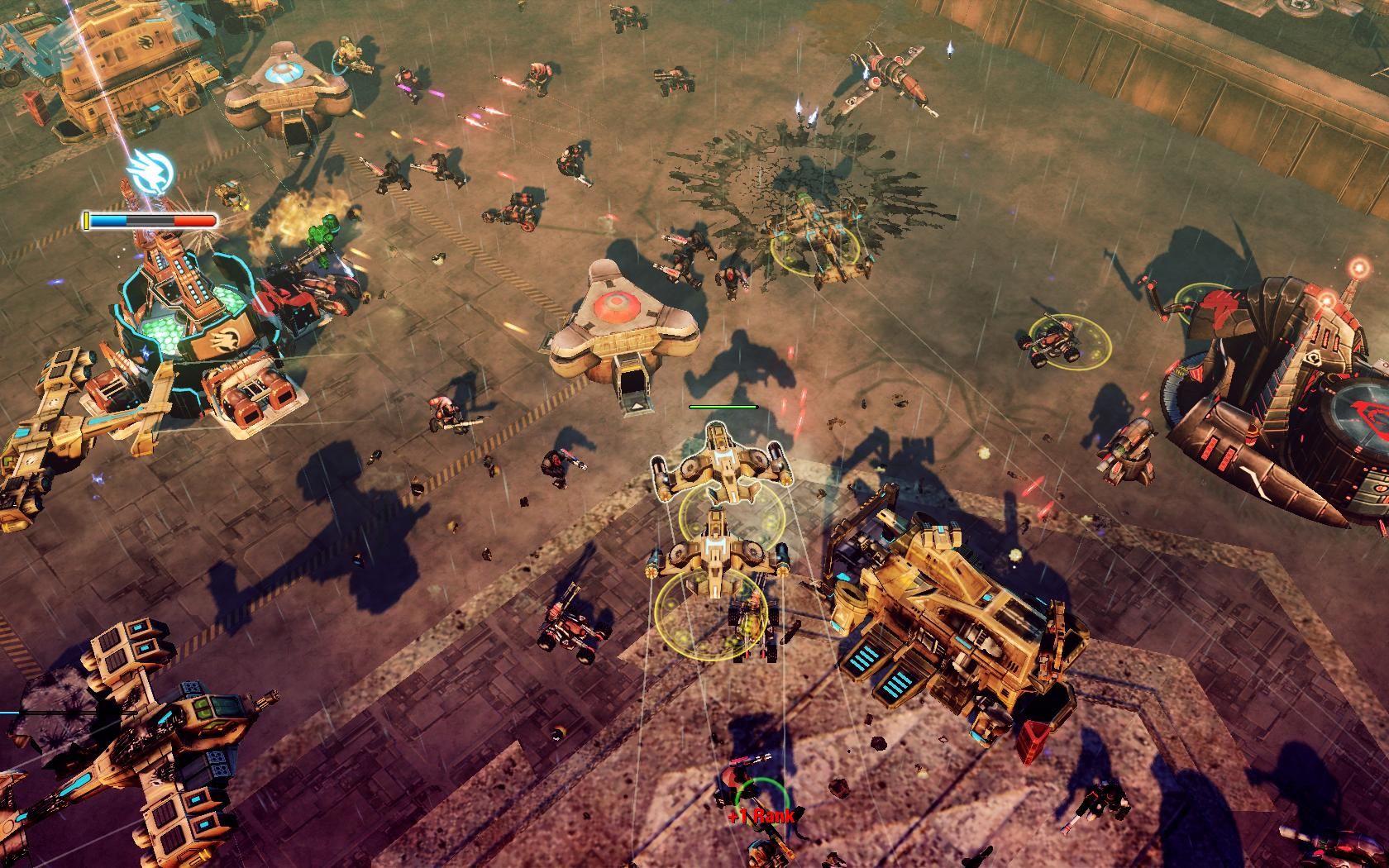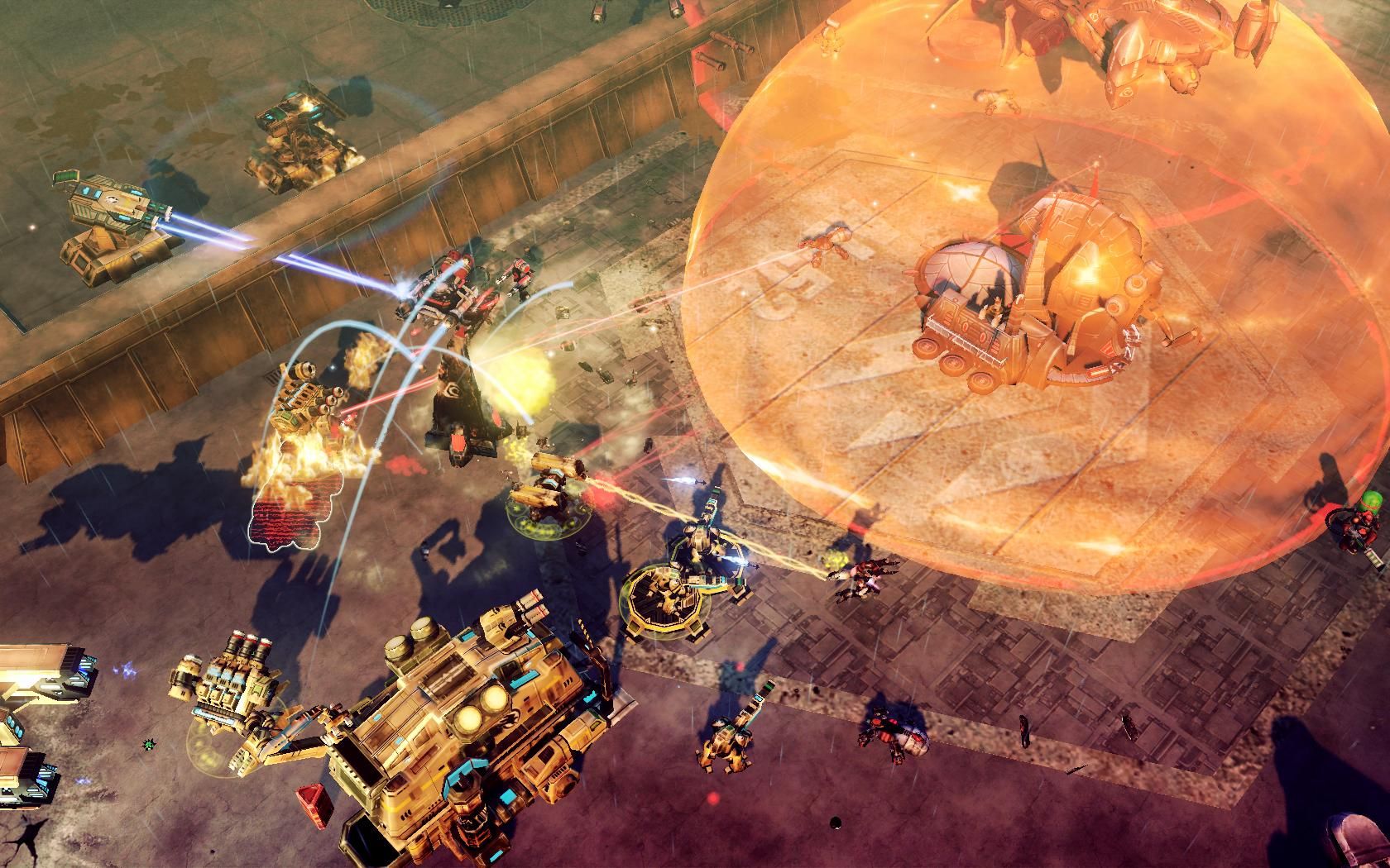 Proving Grounds is a 5v5 map set in a GDI training facility with teams starting in opposite corners of the map. Each node has several directions from which to be attacked from providing many opportunities to flank your opponents. The map contains 2 green and 2 blue tib drops along with 2 uplinks.