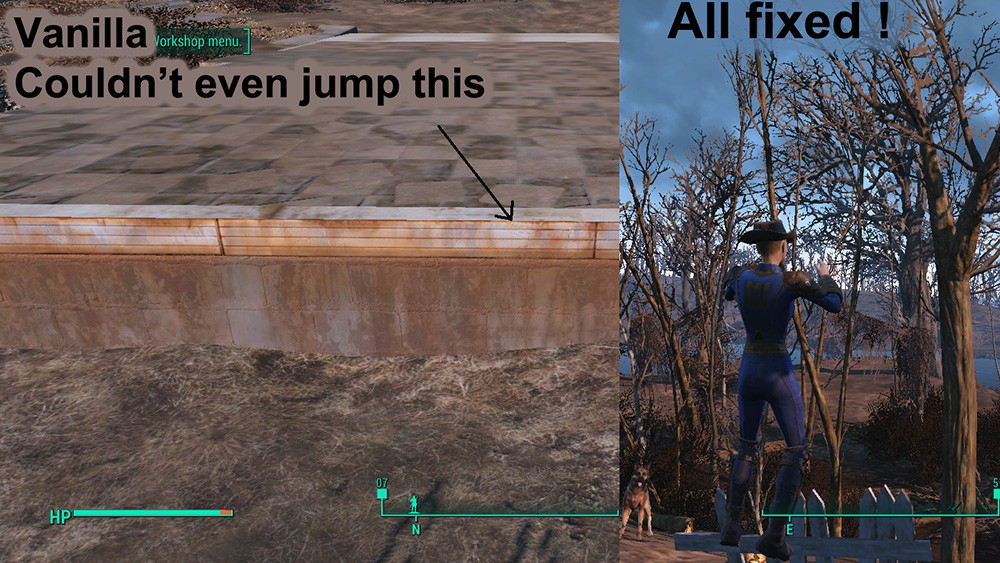 Tired of being defeated by those waist high fences? This new mod doubles the jump height for the Vault Dweller, allowing them to leap over those fences easily.