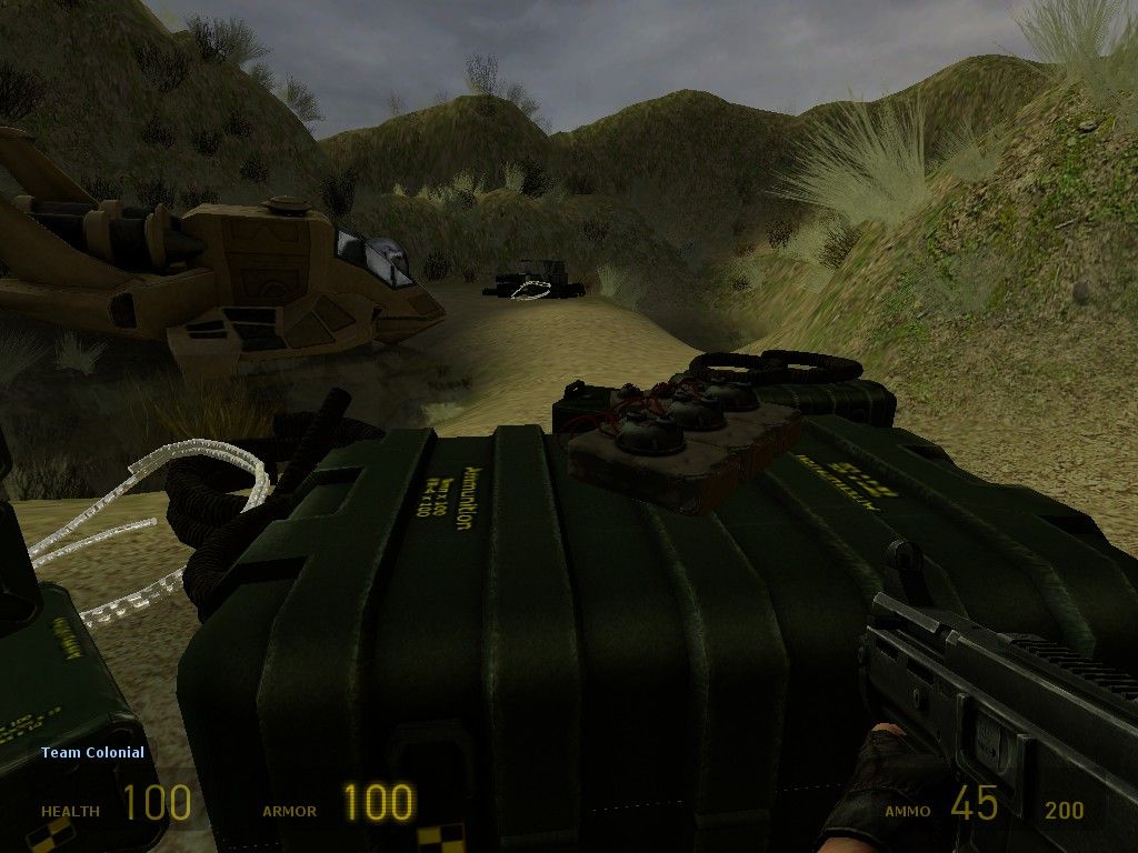 Colonial forces was a mini mod based in the Battle Star Galactica universe. Select from one of two classes, the robotic cylon centurion with powerful twin arm cannons, or fast moving colonials with grenades, pistols and machine pistols.