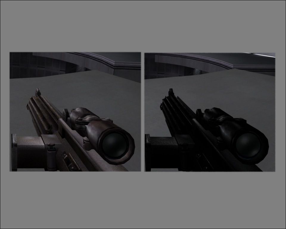 This mod from Ataris makes the Disruptor silver, the DEMP 2 gray, and the E-11 black.