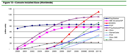 The analysts predict Wii will have sold 93 million units around the world by 2011, with the PS3 standing at 49 million and Xbox 360 in third place with 44 million. Something to it, or just the usual suits throwing figures around?