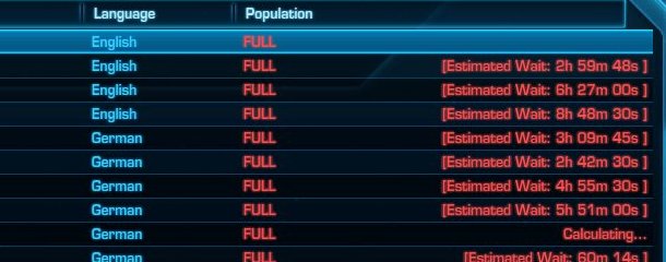 According to PC Gamer, ”The event is designed to stress test the Old Republic servers, but based on current sign in queues, players might not get the chance to see much of the game. Players trying to log in at the moment are looking at up to an eight hour wait to get in. That doesn’t bode too well for The Old Republic’s launch next month, when it’s sure to face similar numbers as players rush to roll their first character in the Star Wars MMO.”