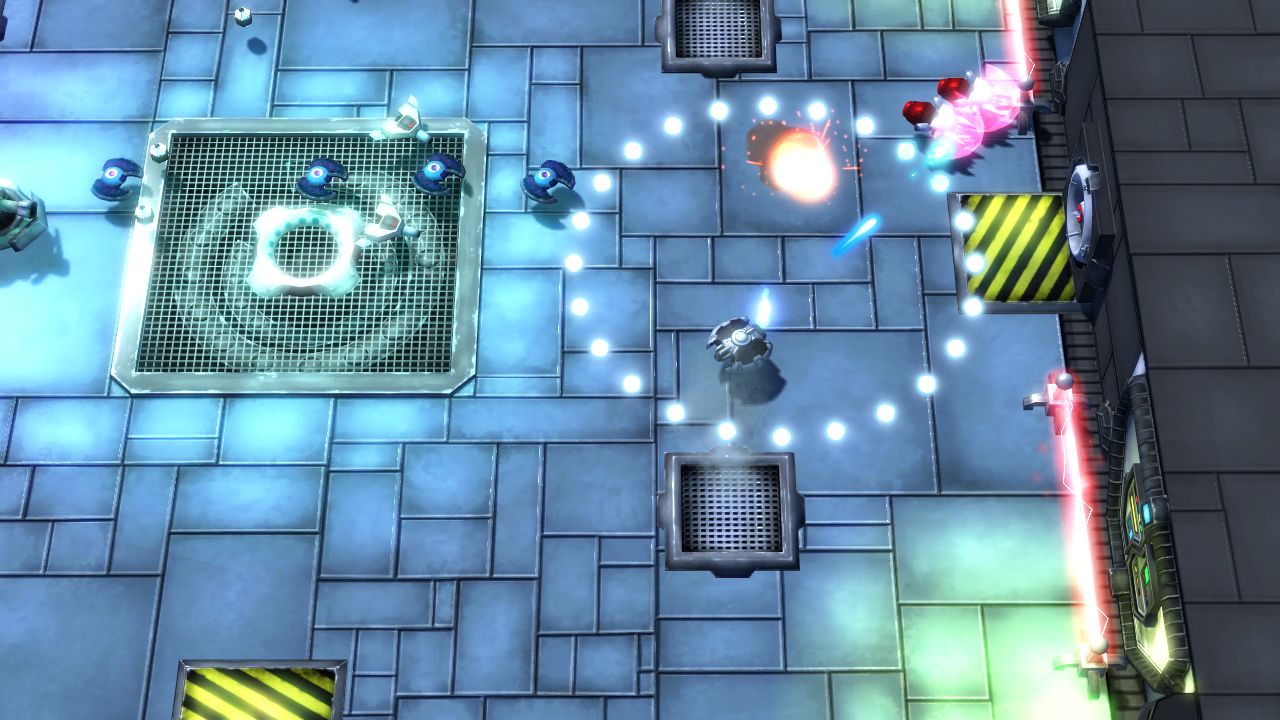 The top-down shooter has players fighting enemies in a ship trapped in a complex, with the goal to leave the complex unscathed. The game features six varied worlds, each with a multitude of challenging arenas. Players can upgrade their ship with over 40 items.