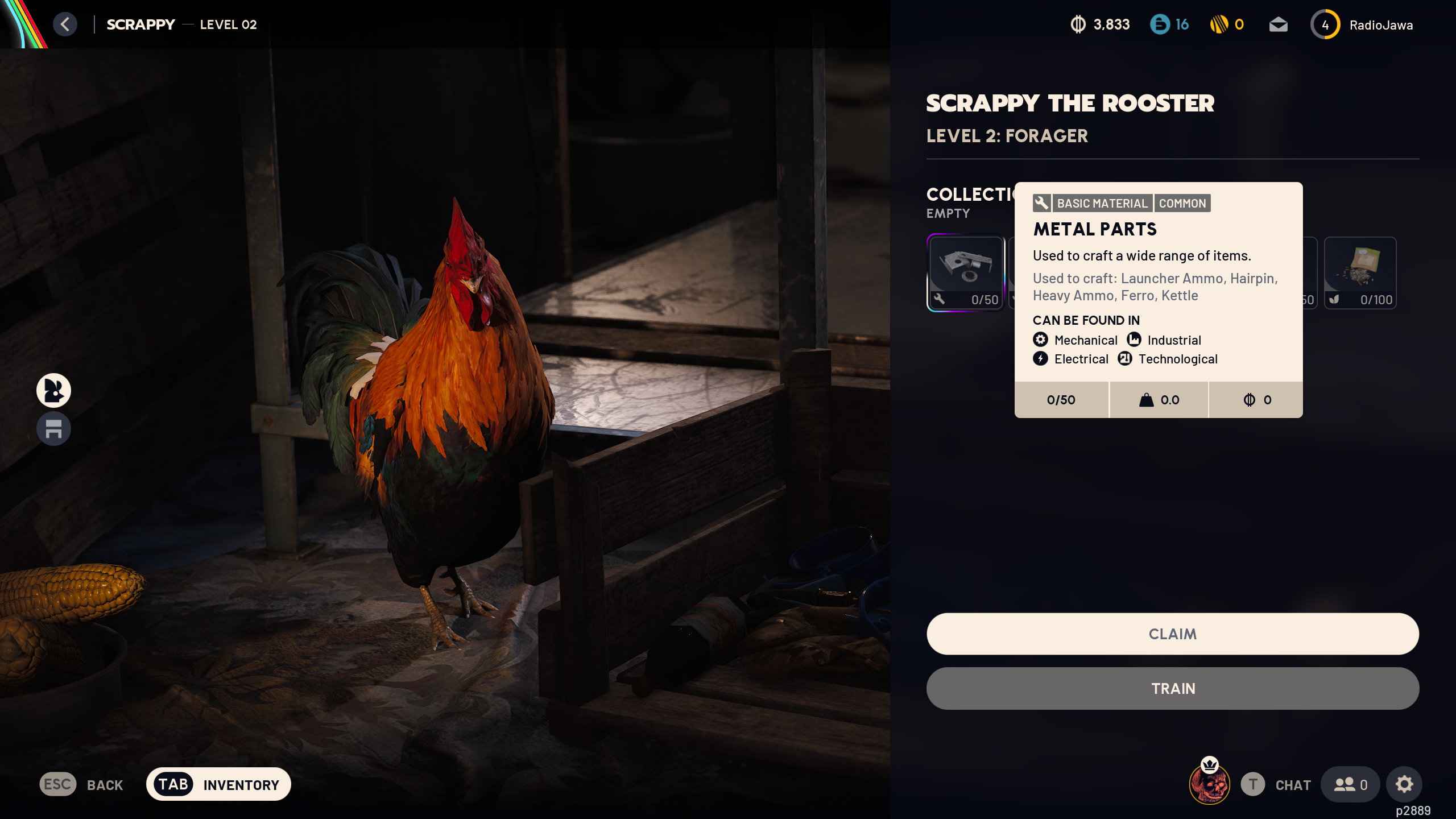At the time of writing, one mechanical component can be made for seven metal parts and three rubber parts. By leveling up Scrappy the cock, you can get better (and more) materials automatically after each run, so don’t forget he’s a great way to passively gain more metal parts.