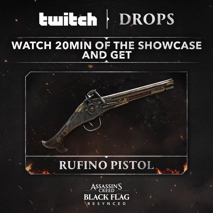 The showcase reward is an in-game Rufino Pistol, which, once claimed, will be available in Assassin’s Creed Black Flag Resynced when it eventually launches.