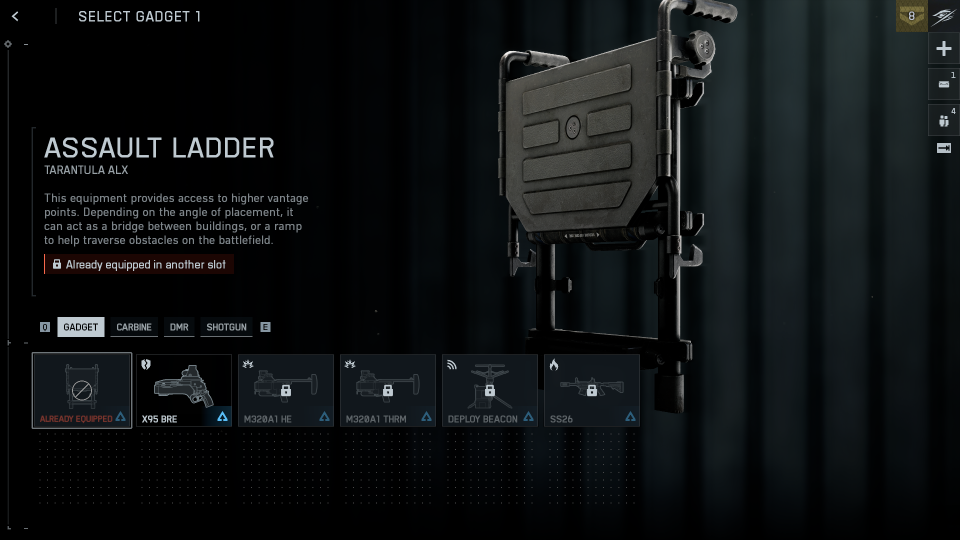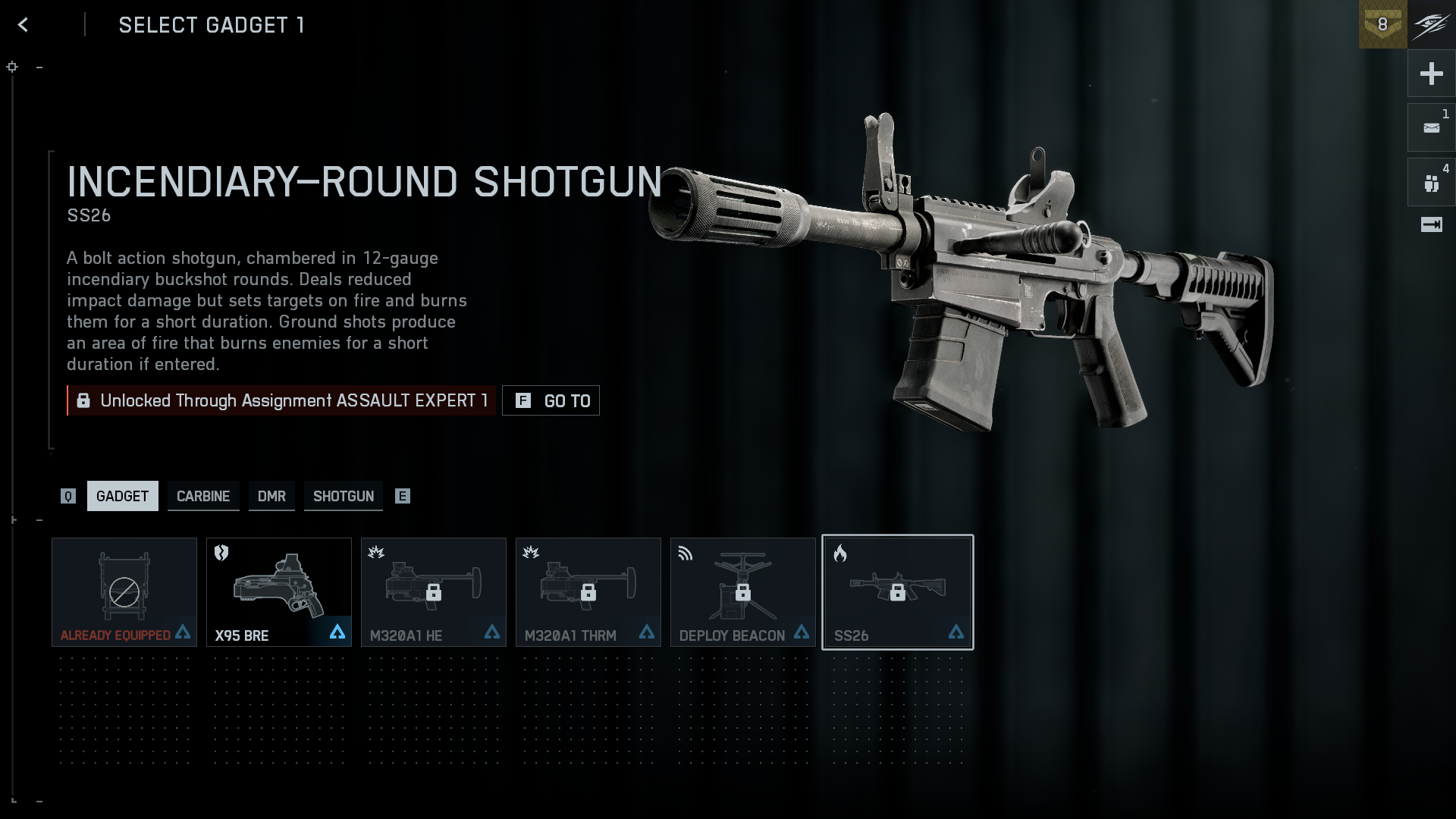 Additionally, the Assault class can equip one Carbine, DMR, or Shotgun in one of the gadget slots.