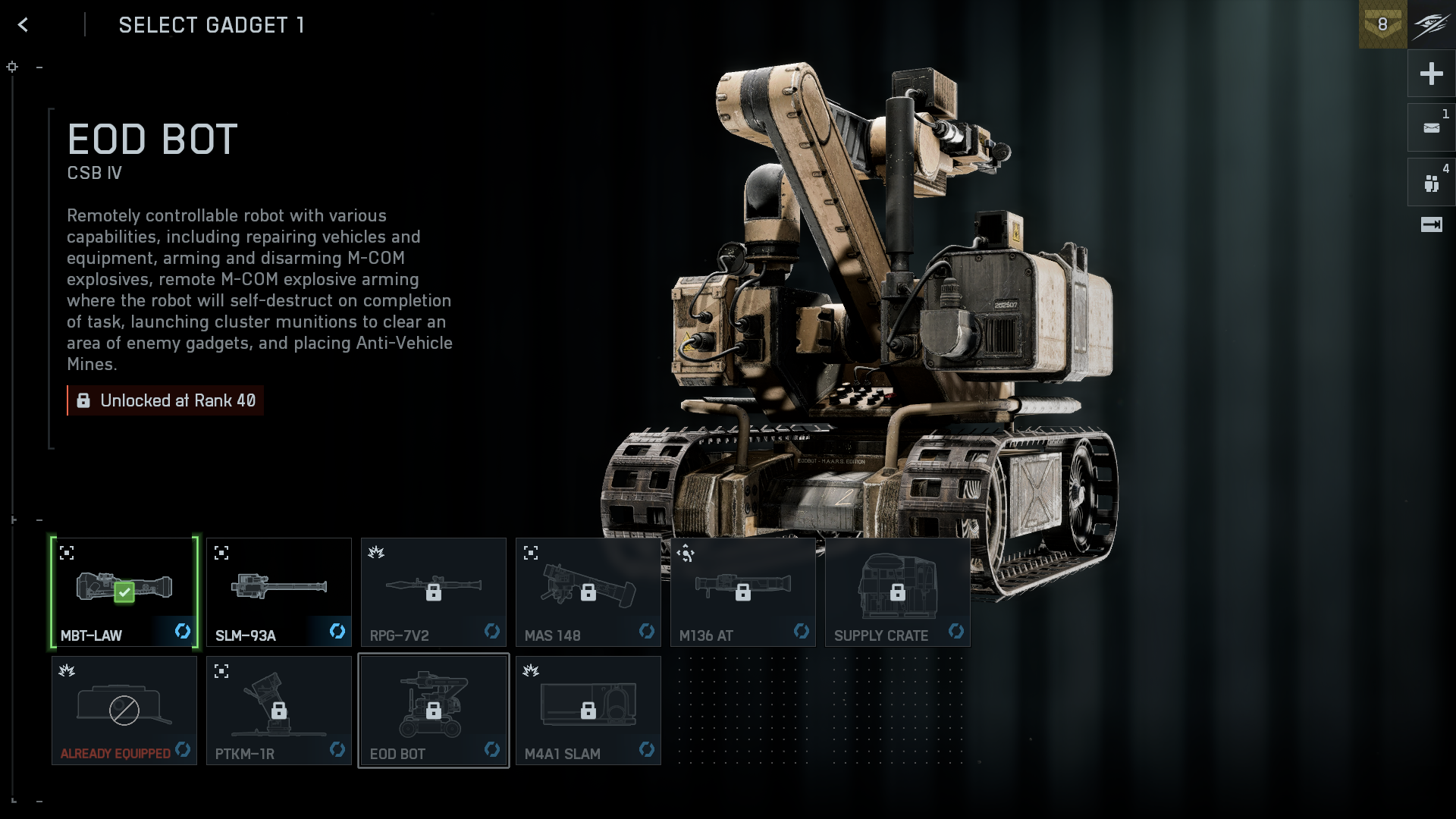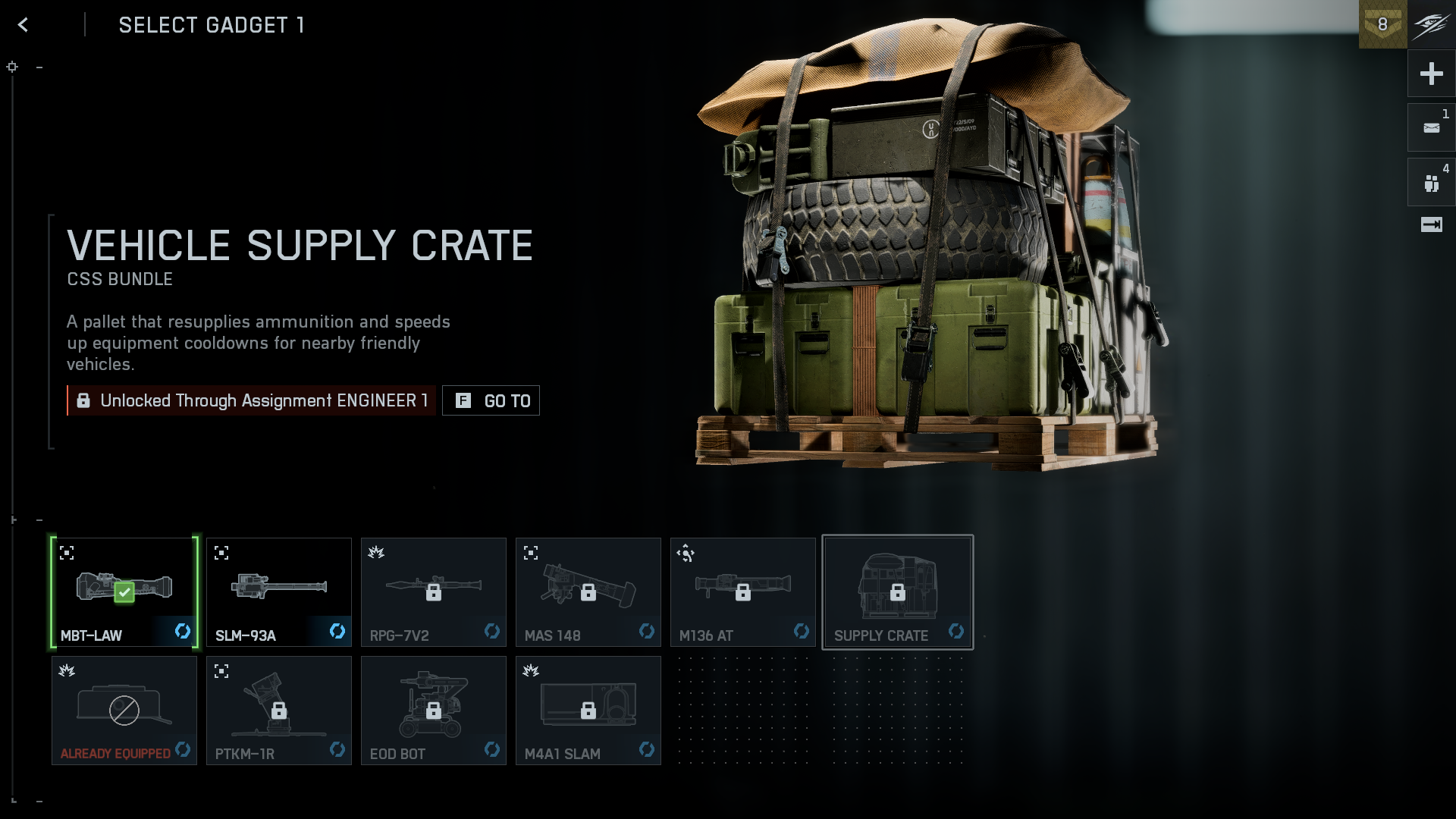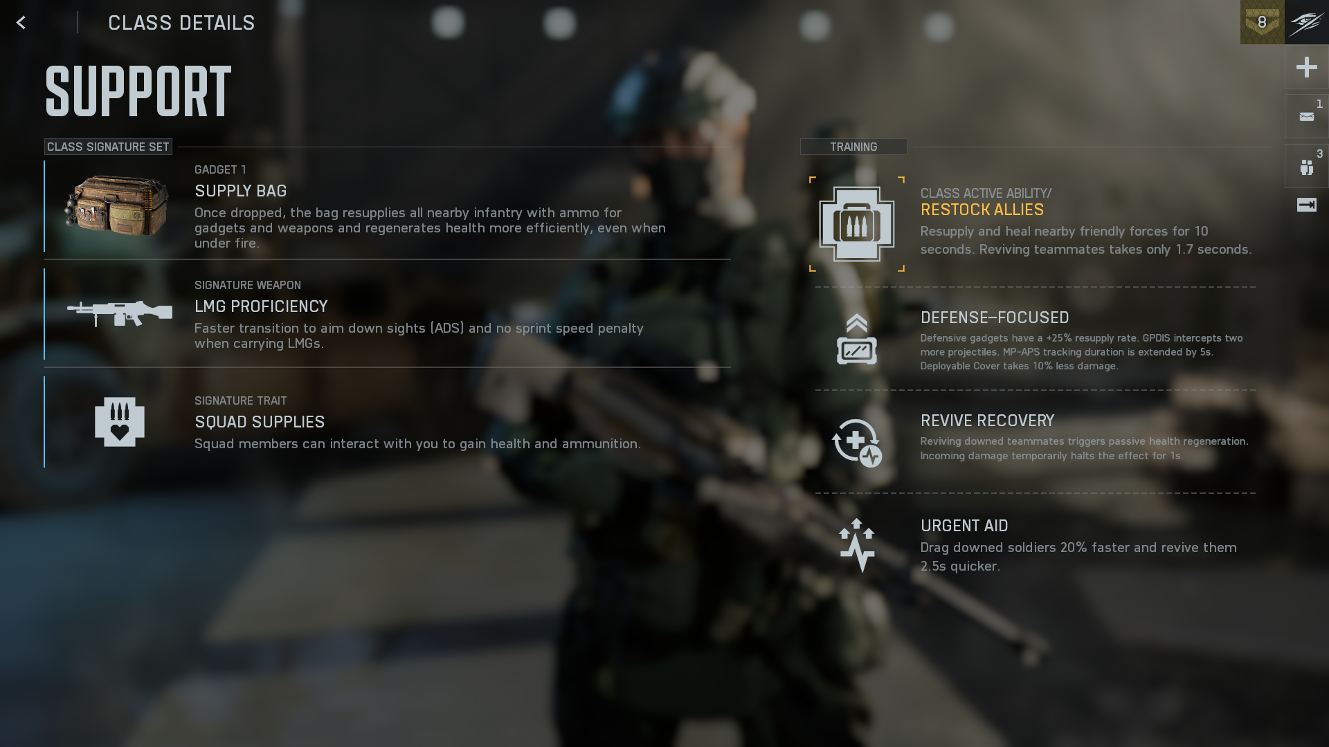 Its gadgets focus on dealing heavy damage to enemy vehicles and keeping allied ones as healthy as possible while also improving their performance in some cases.