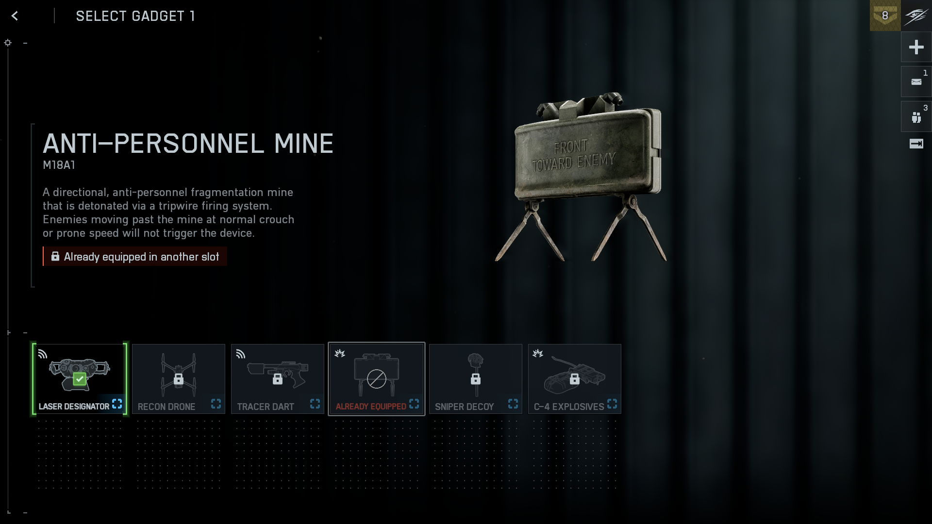 The motion sensor is planted on the ground and spots enemy soldiers, vehicles, and gadgets as long as they’re nearby and moving. Their position is marked on the minimap.