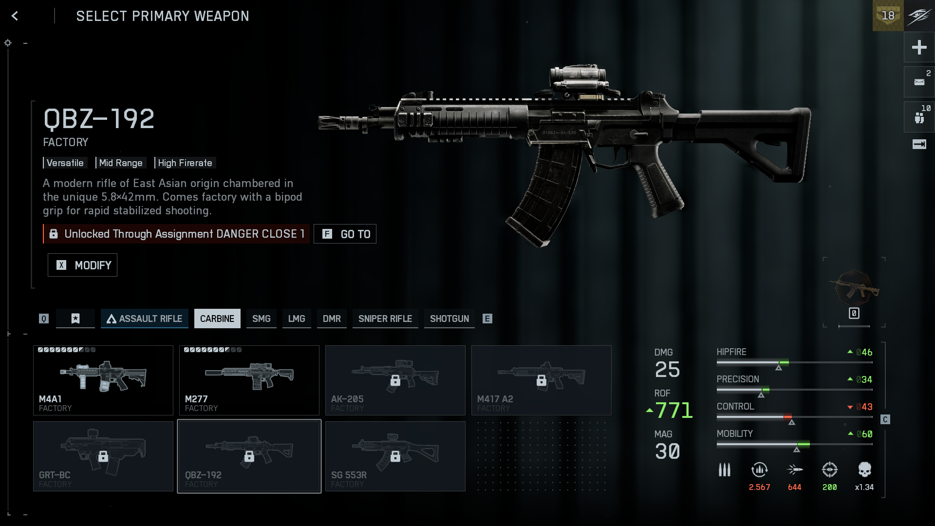 - QBZ-192 - A modern rifle of East Asian origin which uses 5.8x42mm bullets. It includes a bipod in its factory setting.
