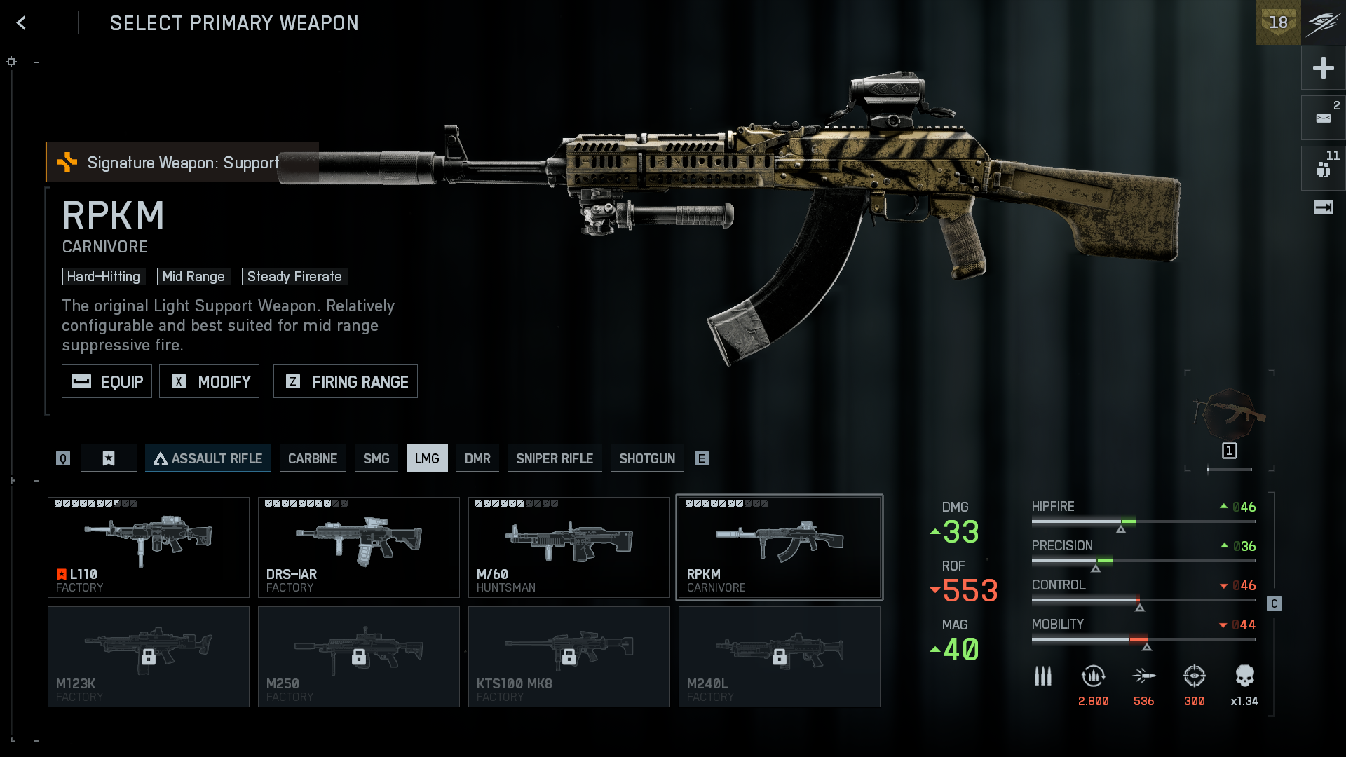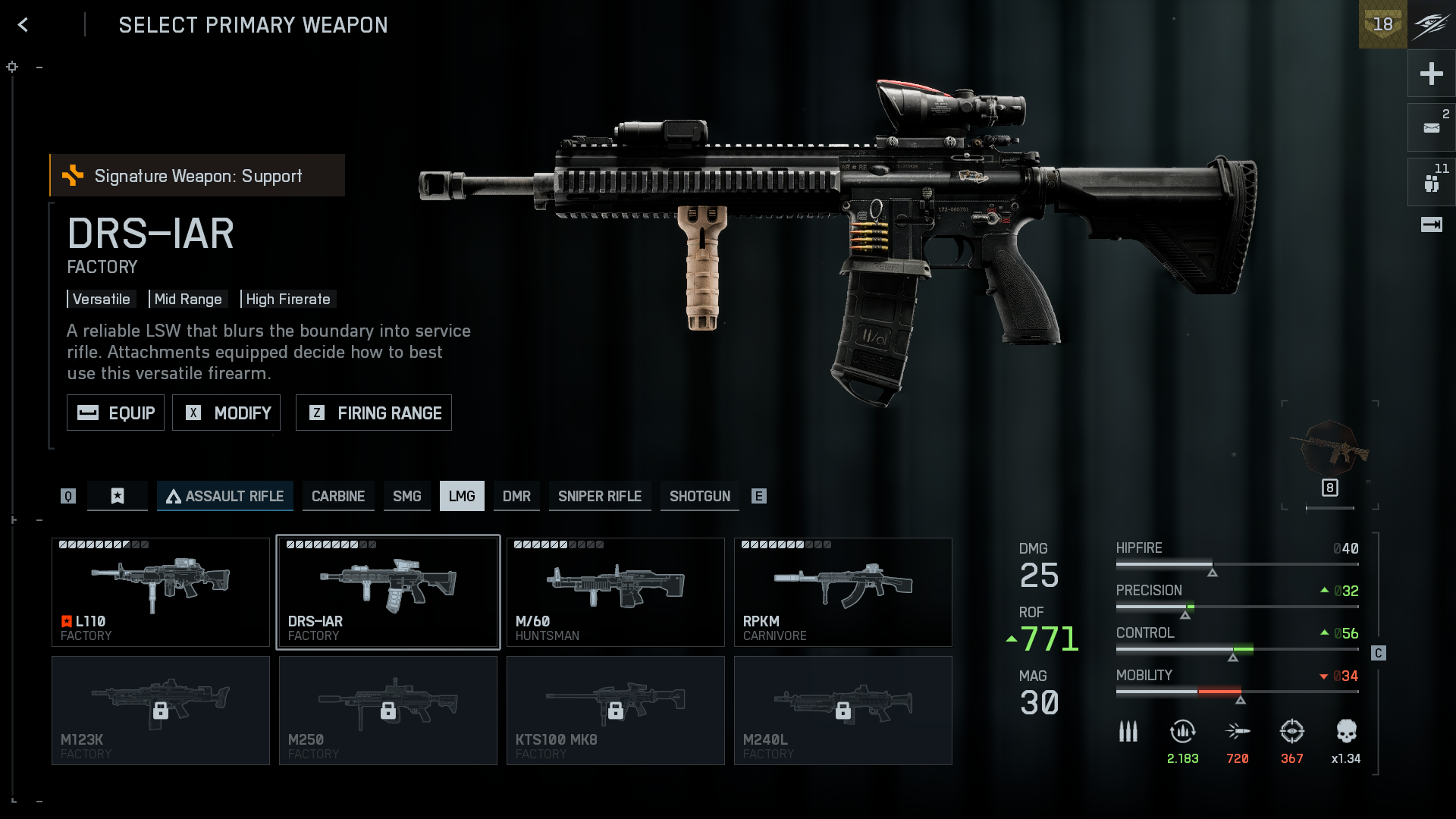 - DRS-IAR - A reliable LSW which exists between assault rifles and versatile LMGs. The equipped attachments define its usability.