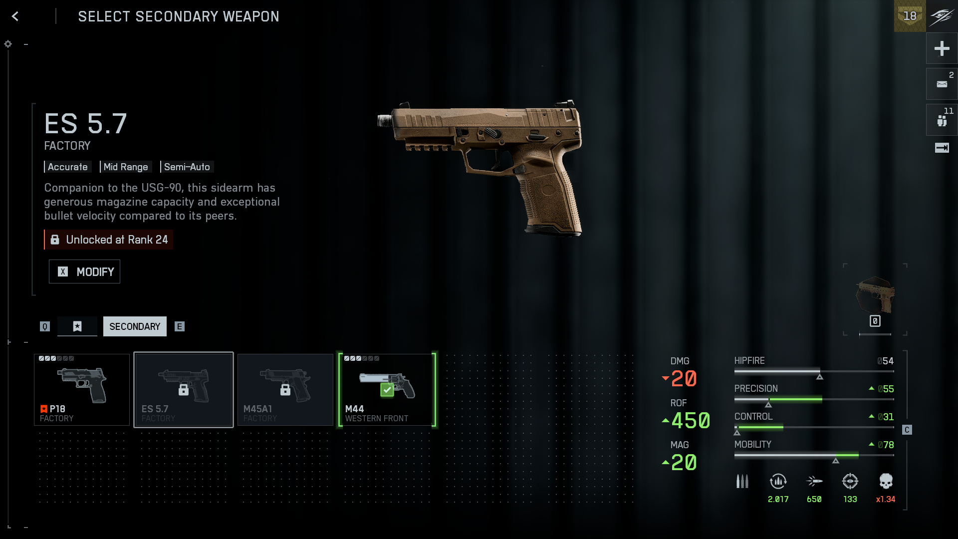 - ES 5.7 - A companion to the USG-90 and a sidearm with a surprisingly big magazine packing high-velocity bullets.