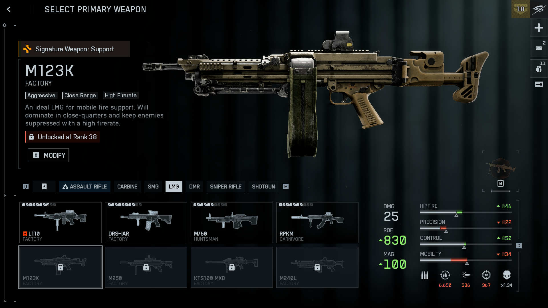 - M123K - An ideal LMG for close-quarter encounters thanks to its high firerate.