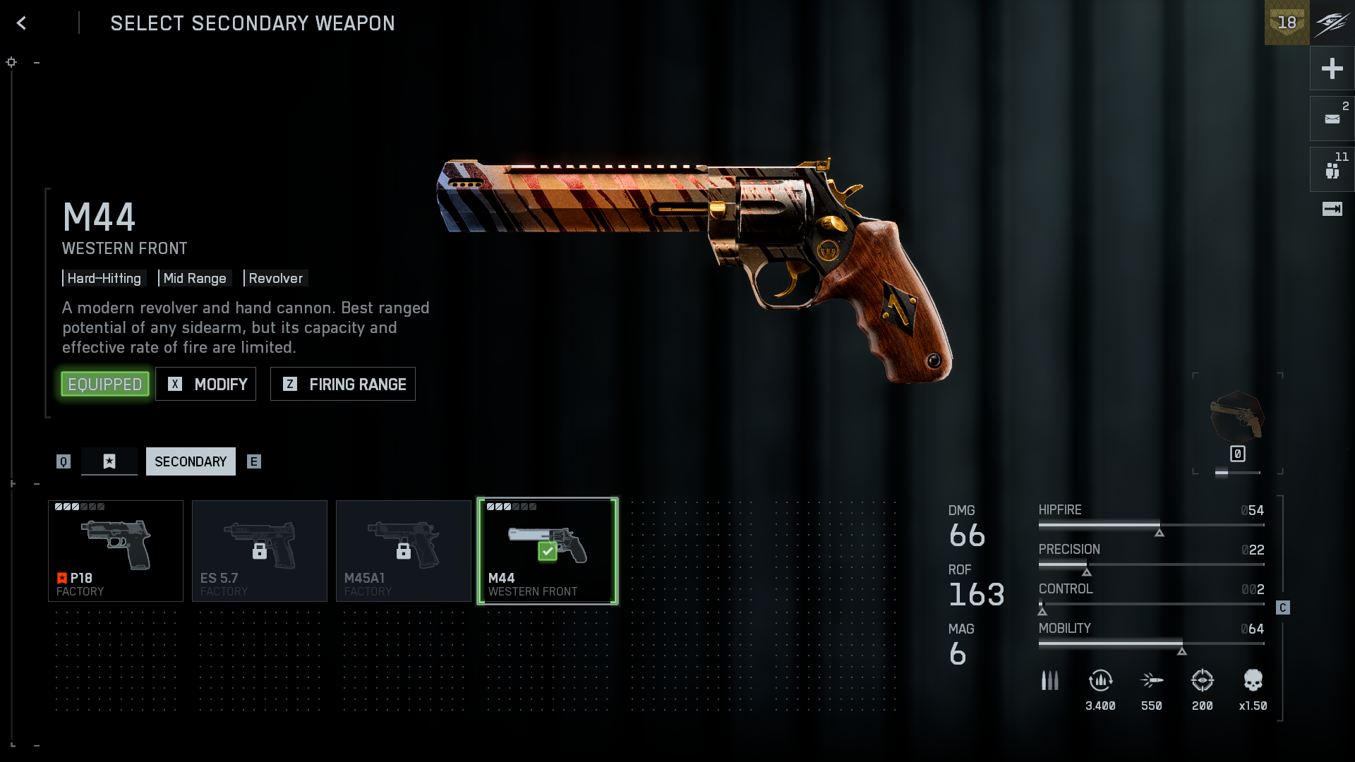 - M44 - A modern revolver and hand cannon with a generous range effectiveness and high damage output. Its rate of fire and capacity are limited.