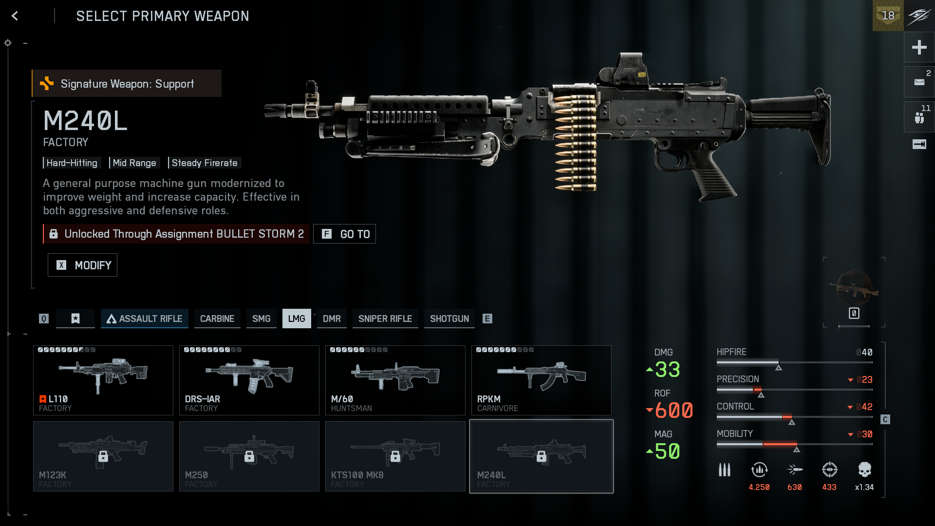 - L110 - An all-purpose Squad Automatic Weapon chambered in 5.56x45mm. Well-matched for most engagements.