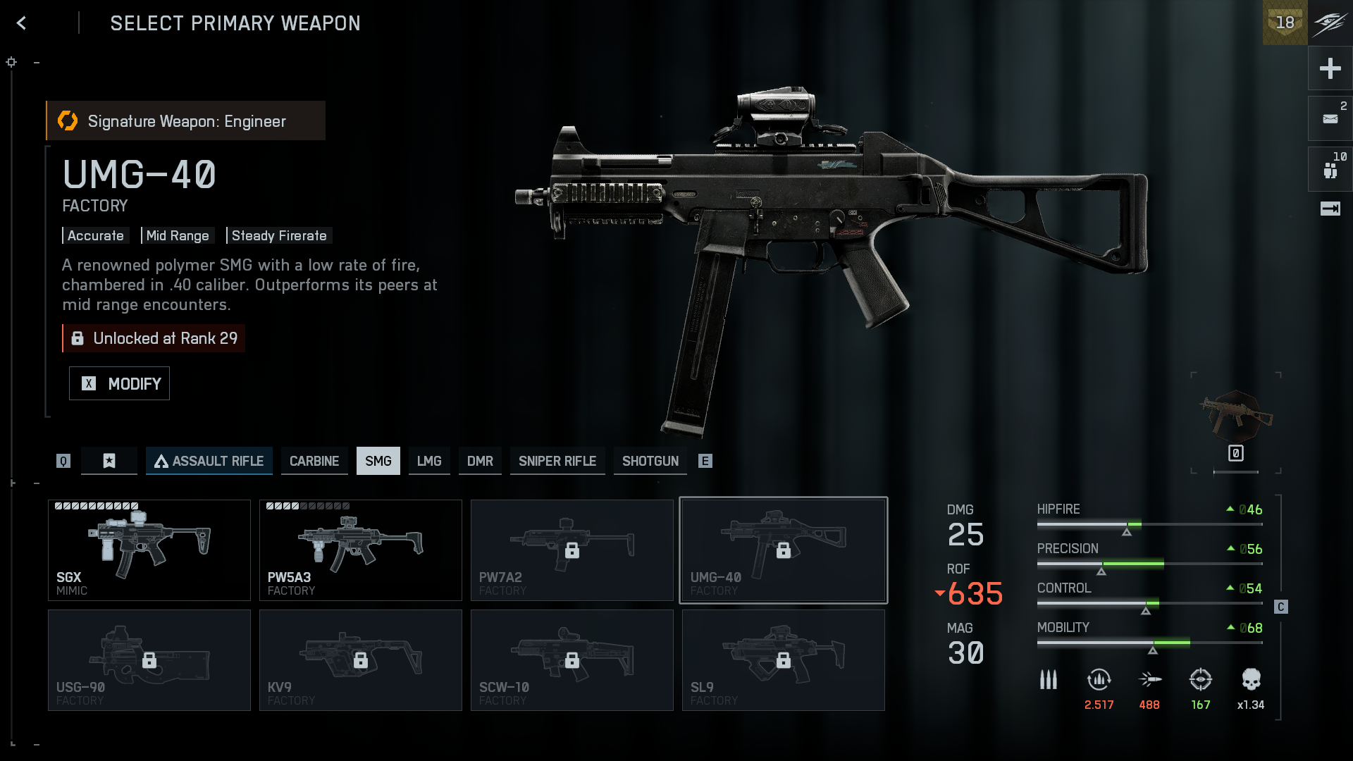- UMG-40 - Another popular SMG made of polymer that operates with a low rate of fire and is chambered in .40 caliber. An excellent performer in mid-range encounters.