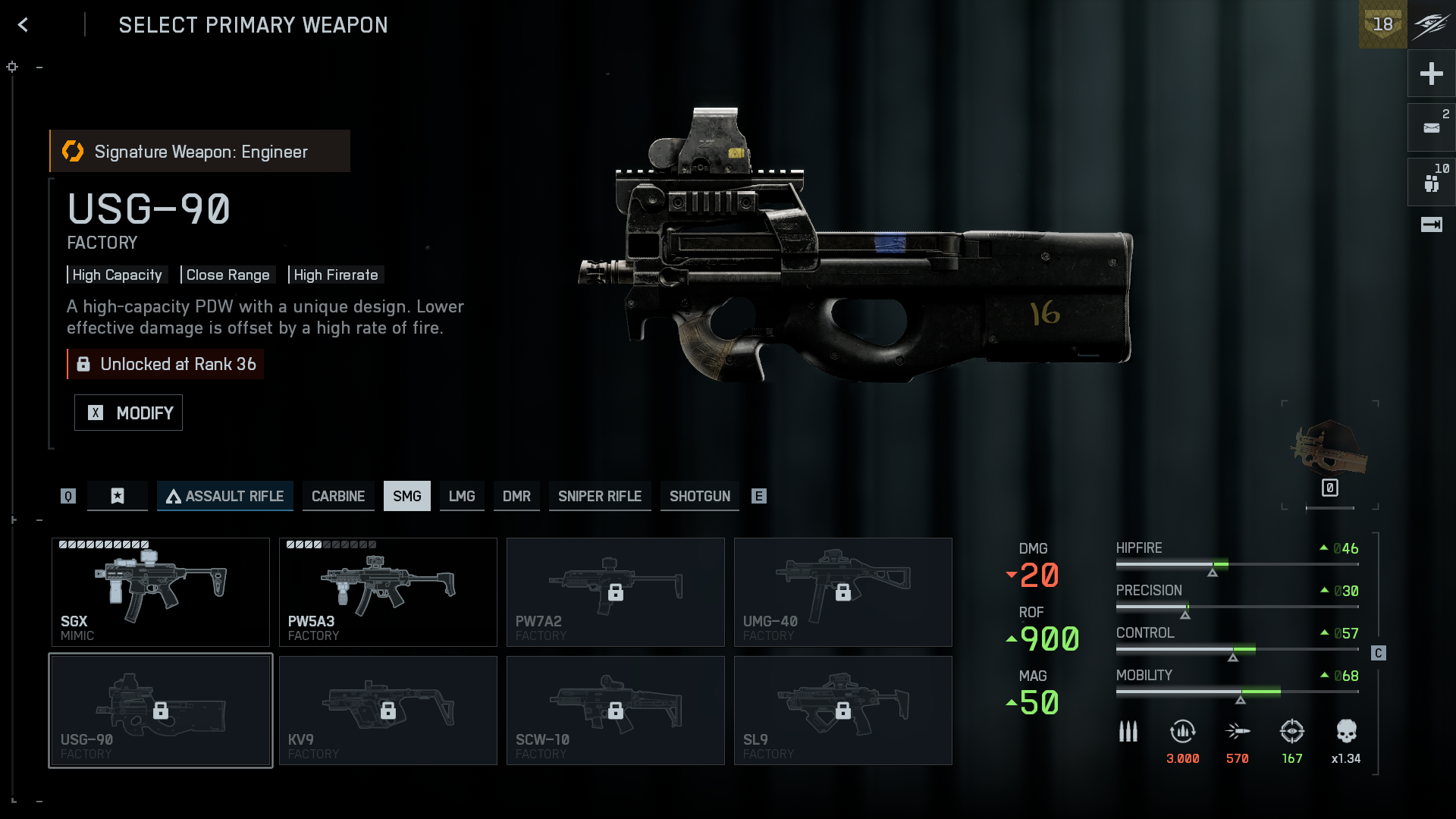 - USG-90 - The famous high-capacity PDW with an iconic design. Low damage elevated by a very high rate of fire.