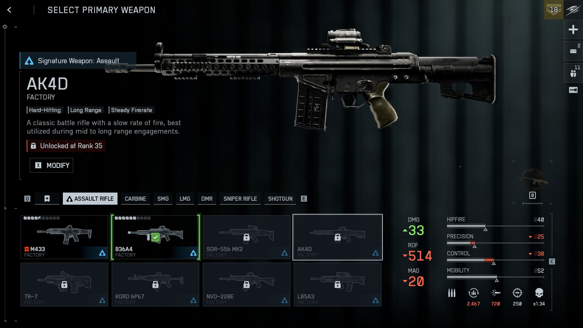 - AK4D - A classic battle rifle with a slower rate of fire but high stopping power in mid-to-long range engagements.