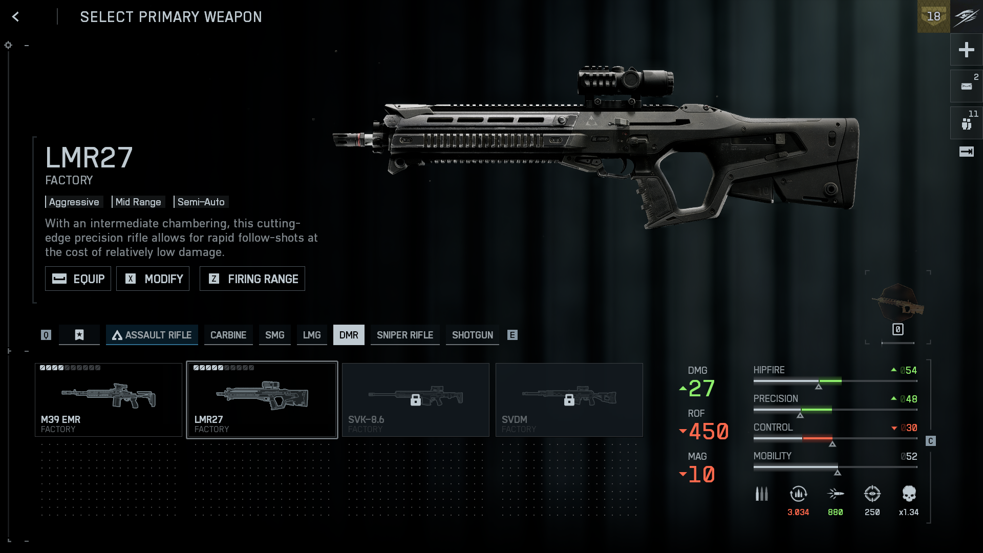 - LMR27 - A cutting-edge precision rifle with a low damage output which makes rapid follow-up shots possible.