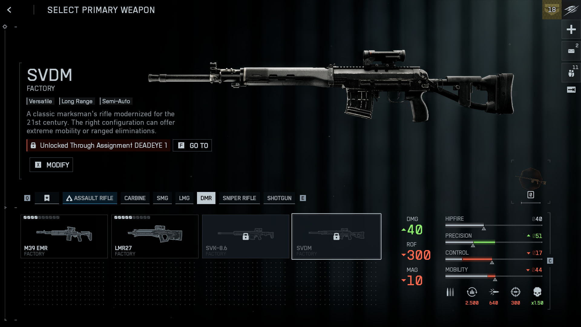 - SVDM - A classic marksman rifle that’s been modernized for 21st-century warfare. It can perform well at a variety of ranges depending on the build.