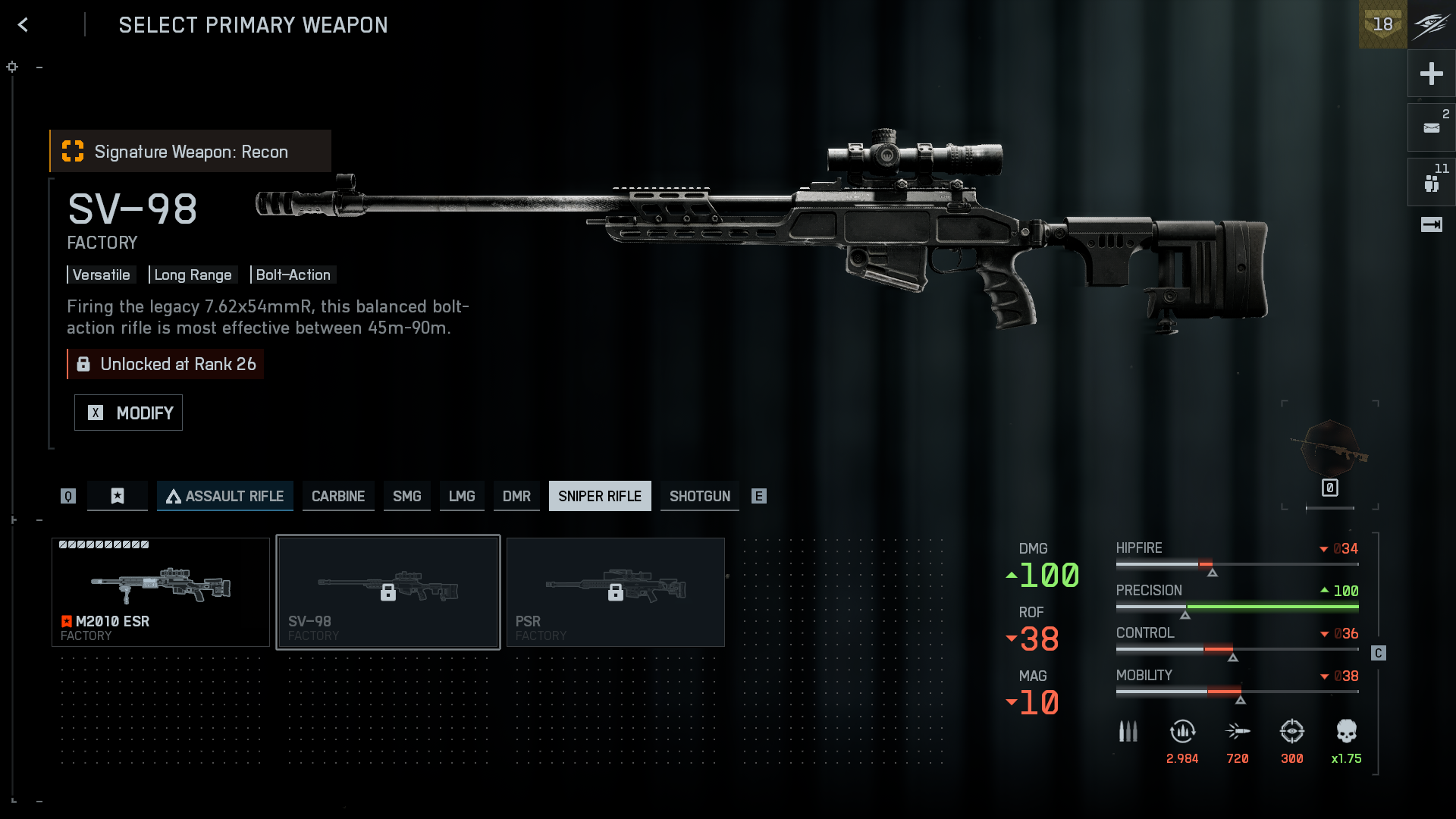 - SV-98 - A balanced bolt-action rifle that’s perfect at the range between 45 and 90 meters.