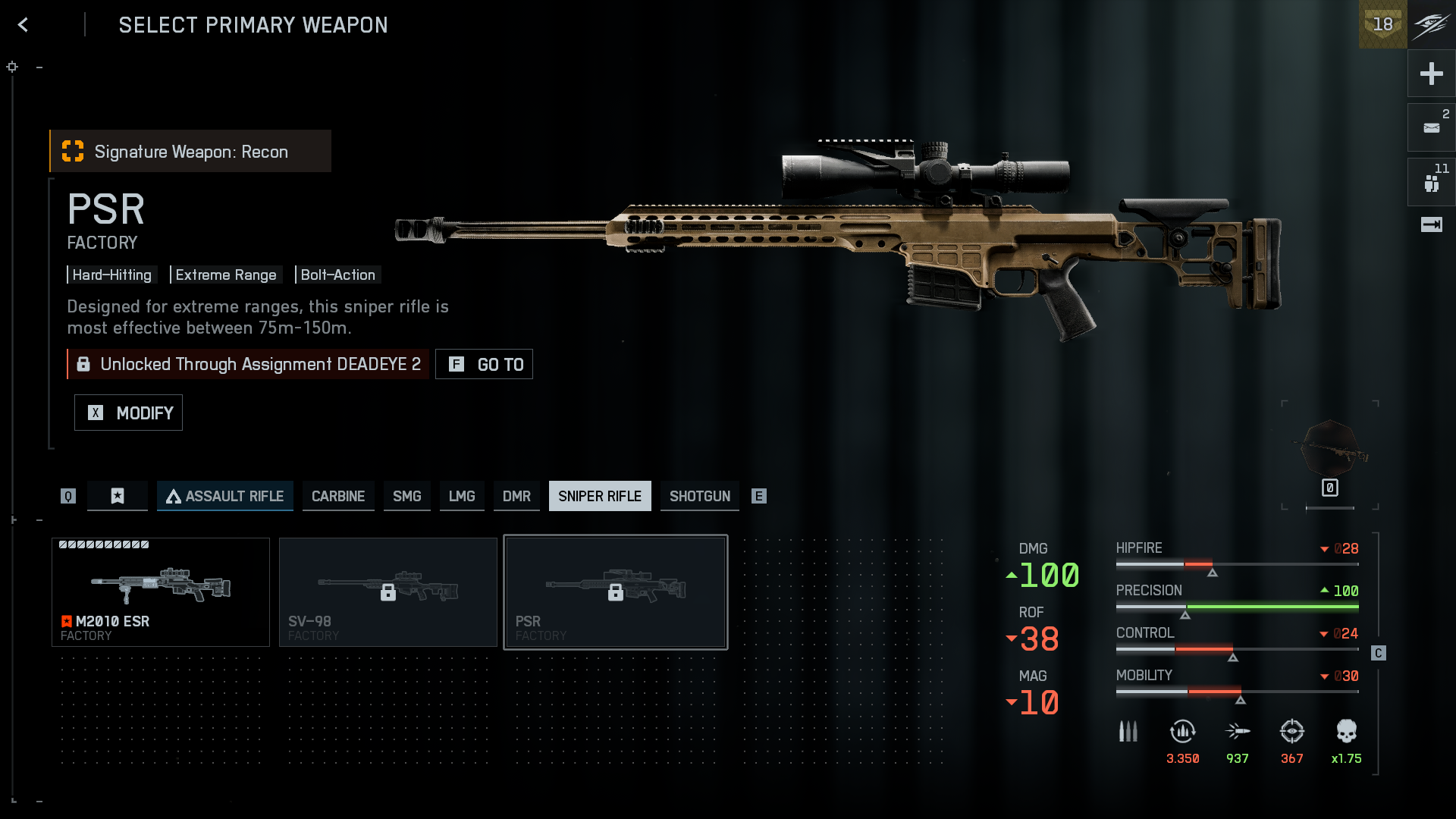 - PSR - A sniper rifle designed for extreme ranges and with a very high damage output. It’s most effective between 75 and 150 meters.