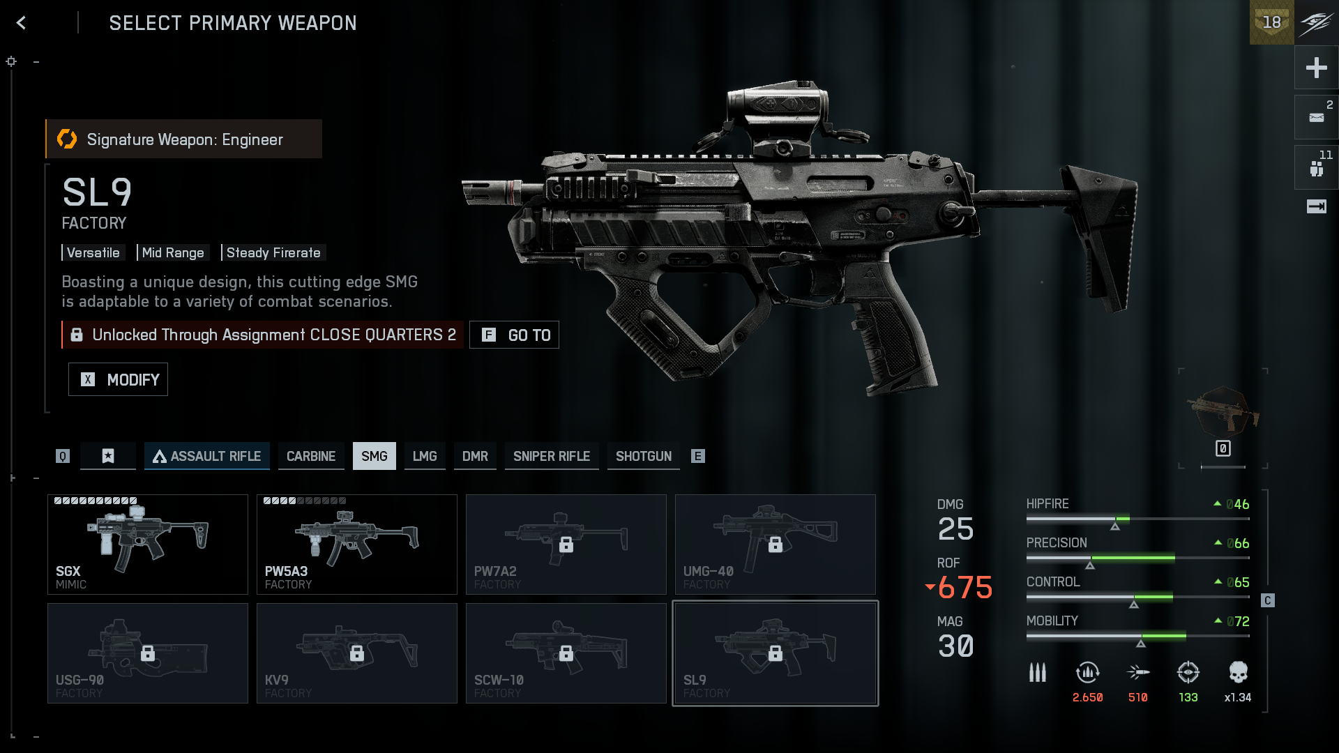 - SL9 - A uniquely designed, cutting-edge SMG which can adapt well to any combat scenario.