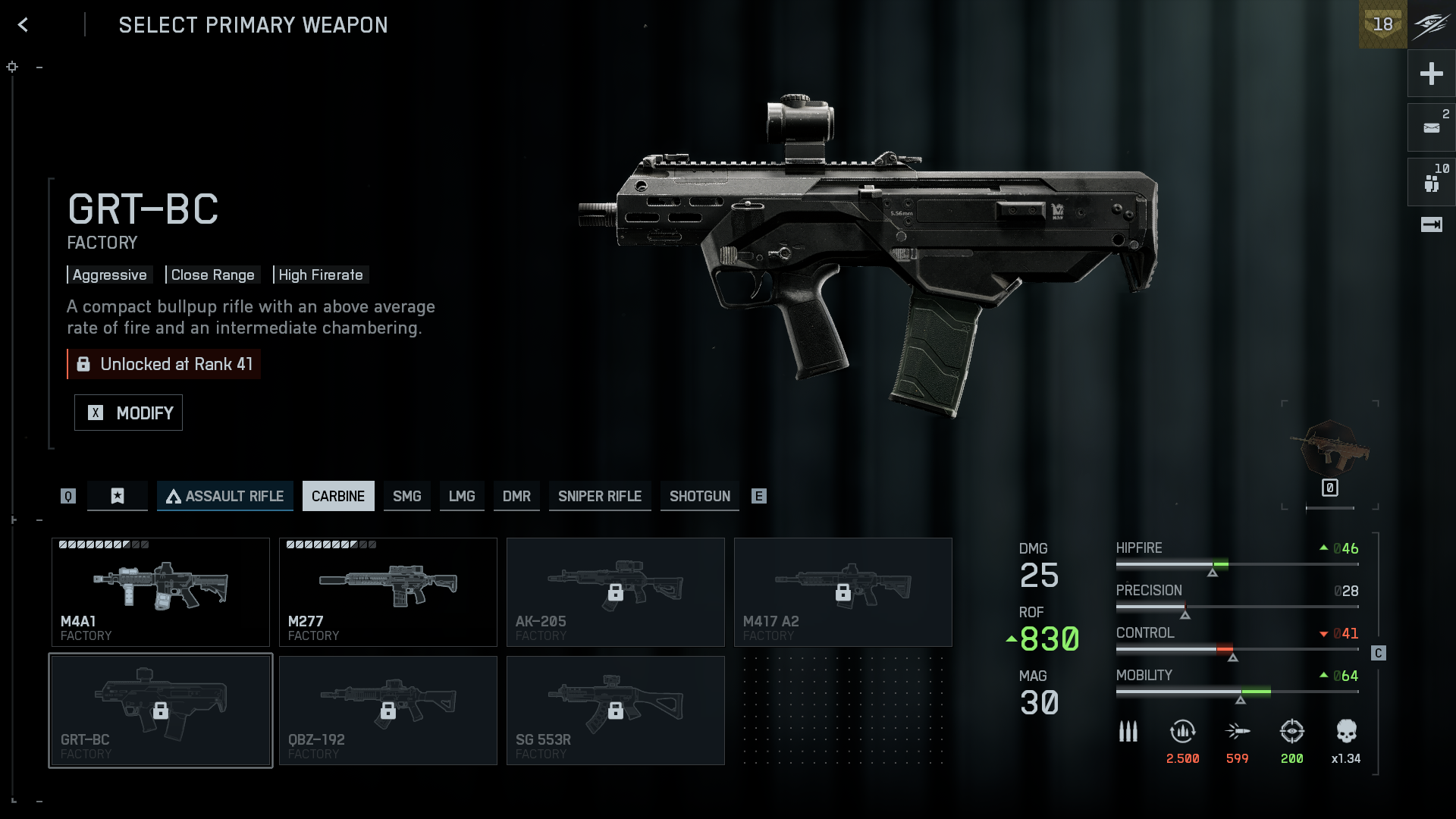 - GRT-BC - A compact bullpup rifle with an above-average rate of fire, good hipfire accuracy, and an intermediate chambering.