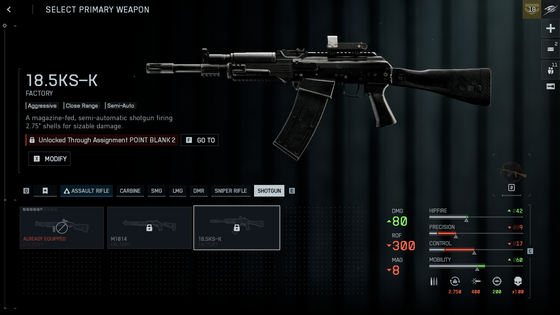 - 18.5KS-K - A magazine-fed, semi-auto shotgun which deals sizable damage.