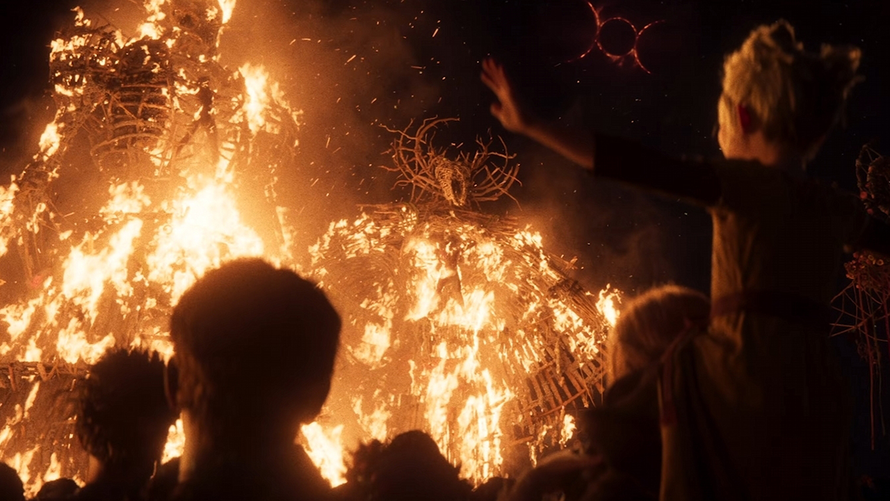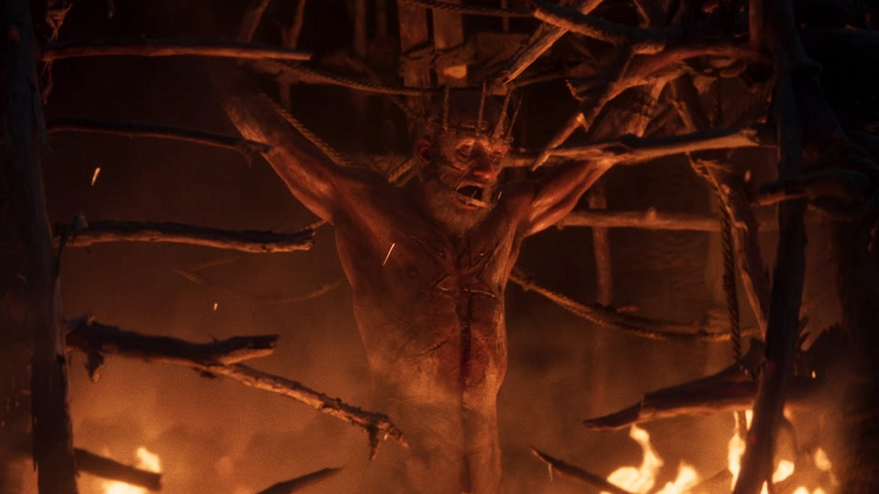 We can infer something’s seriously wrong in the lands of Rivellon though. During a wicker man celebration full of fire, blood, feasting, and even public orgies, the man being sacrificed (maybe a sorcerer of sorts) releases dark forces which attract and consume every living being present at the event, turning them all into a gigantic, disturbing effigy of sorts.