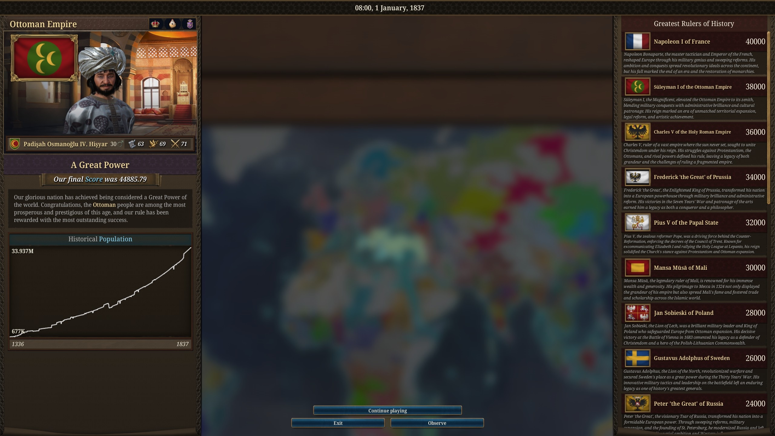 Its end date occurs almost 500 years later, giving us quite a bit of time to ensure that the nation we chose rises to glory.