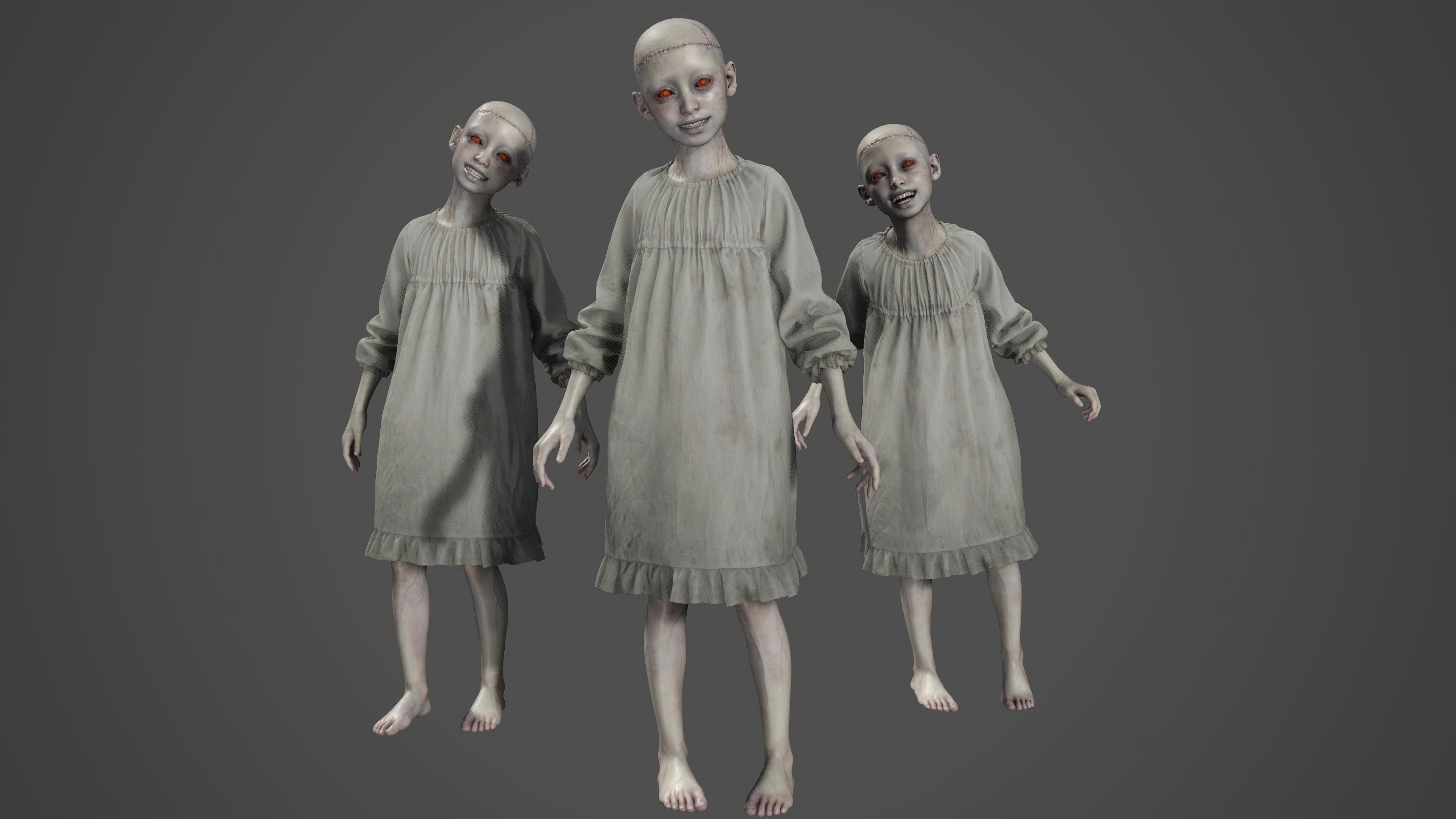 The result of early Spencer experiments, the bald, scarred beasties are freakishly strong, red-eyed girls that incessantly giggle as they search for Grace.