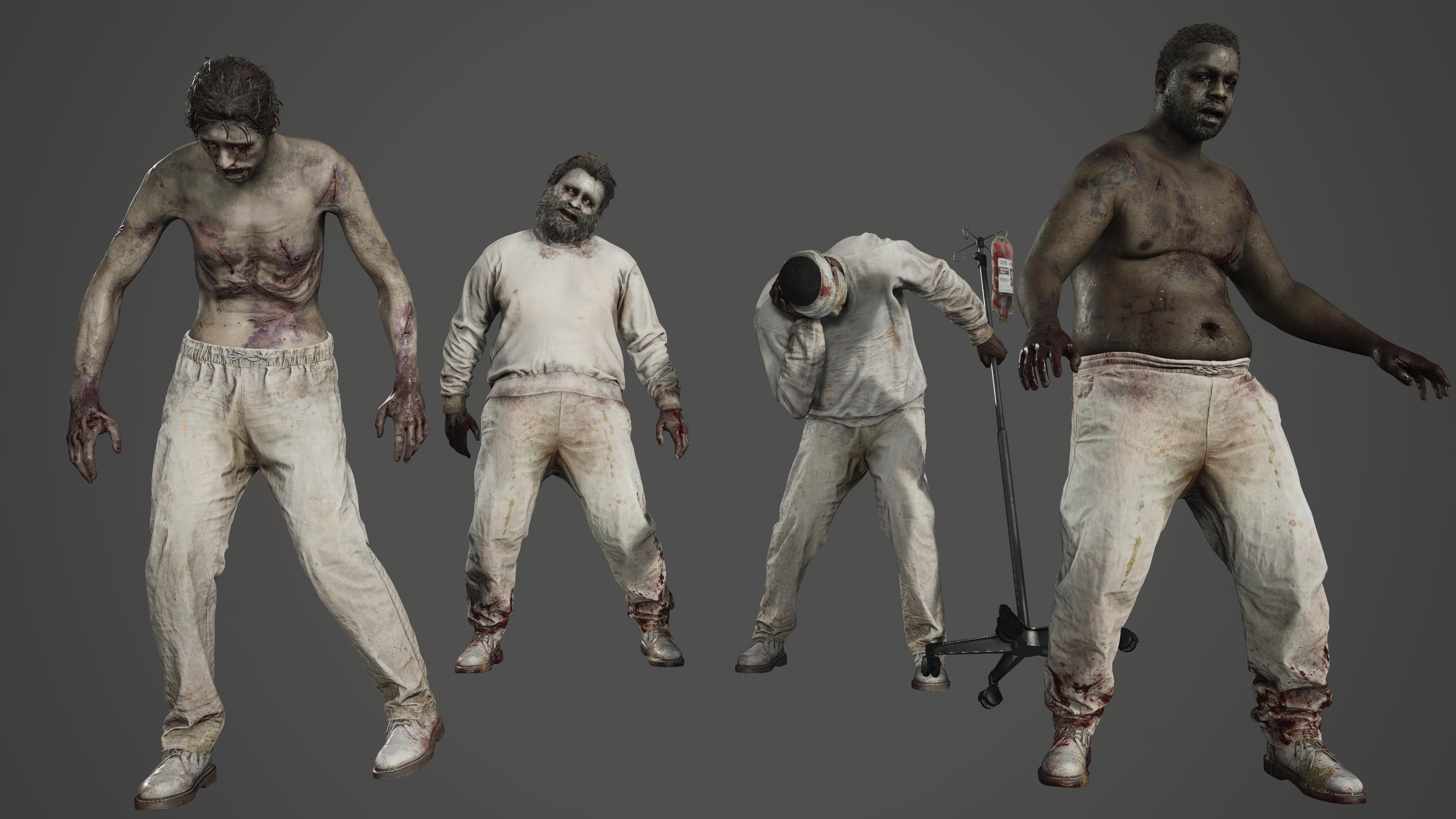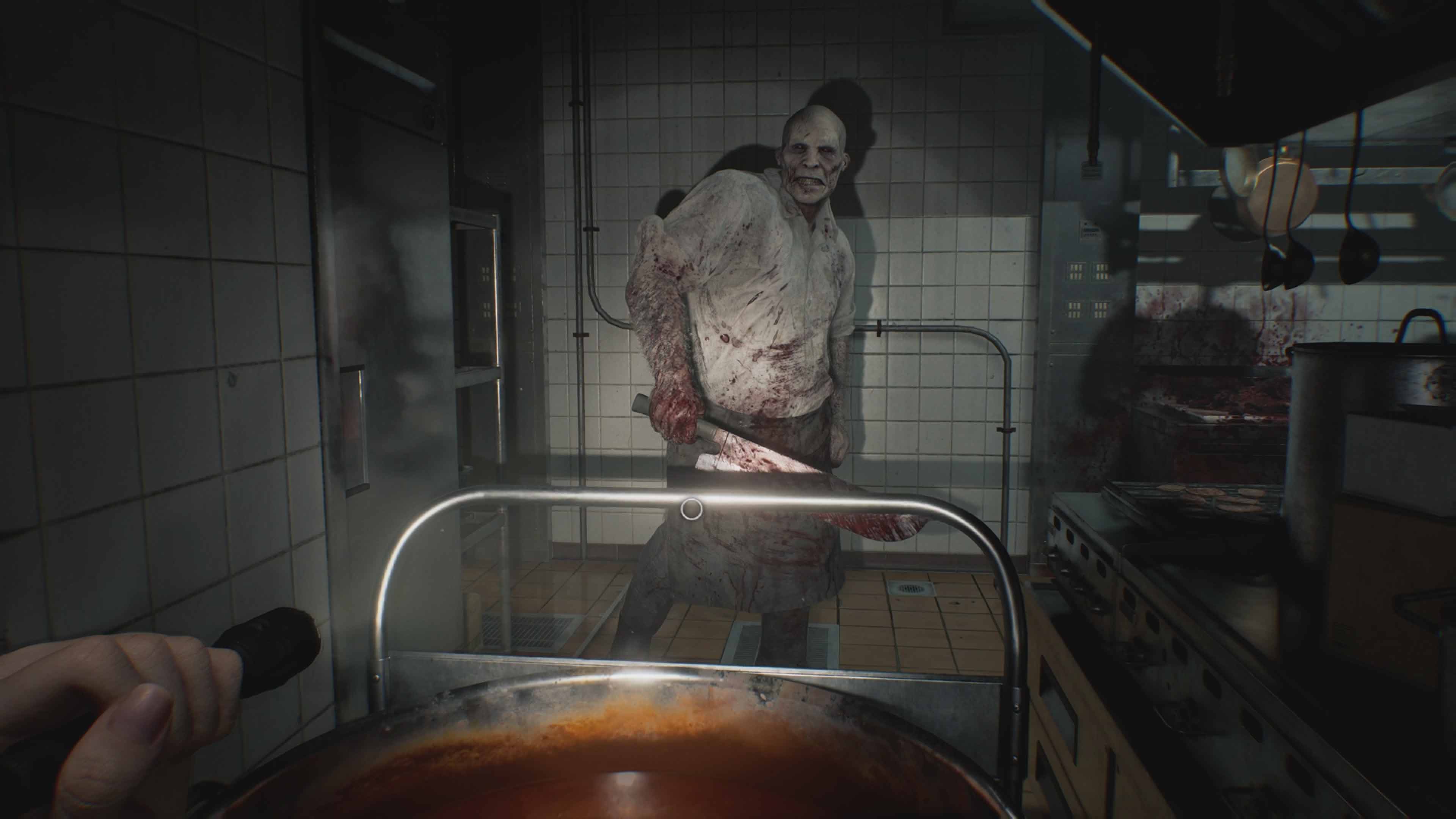 Later in the game, we get different flavours as we return to Raccoon City. The streets have dried up corpses that crawl out of the ground, and the final location sees some fish-belly white lab-grown cadavers.