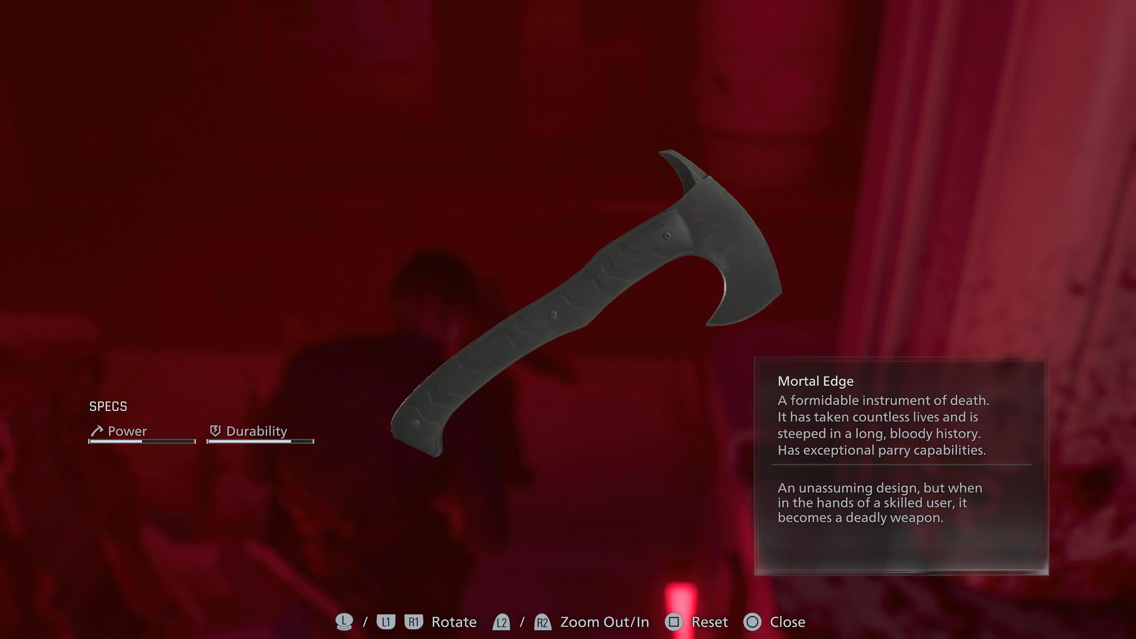 Like most of Leon’s arsenal, the Mortal Edge is the superior version of the starter hatchet. It’s a late-game addition the first time around, but it sure comes in handy as the threats ramp up.
