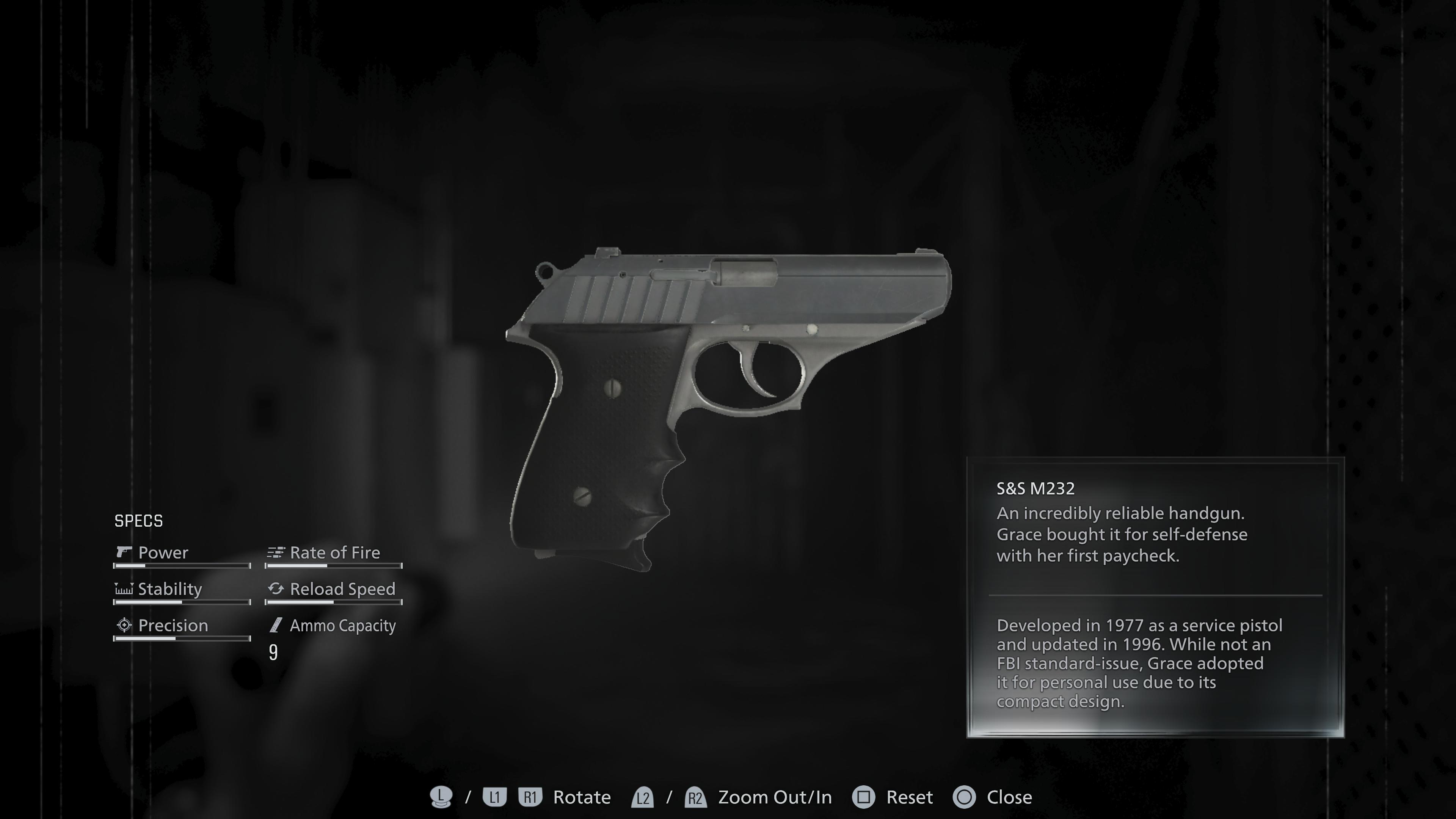 A powerful and precise handgun. The built-in suppressor effectively dampens the sound of all shots. Customizing the number of baffles adjusts how quietly it fires. While it won’t match a magnum for raw damage, its balanced stats and ten-round capacity make it reliable in both silent takedowns and sudden firefights.