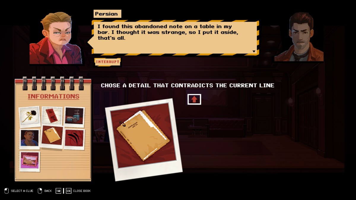 The pixel art style is pretty detail-heavy, and the game is a real looker, even in the sparser environments featured. There’s a nice bit of visual flair reminiscent of a certain deduction series, too, and a sense of humor to lighten some of the darker moments shown.