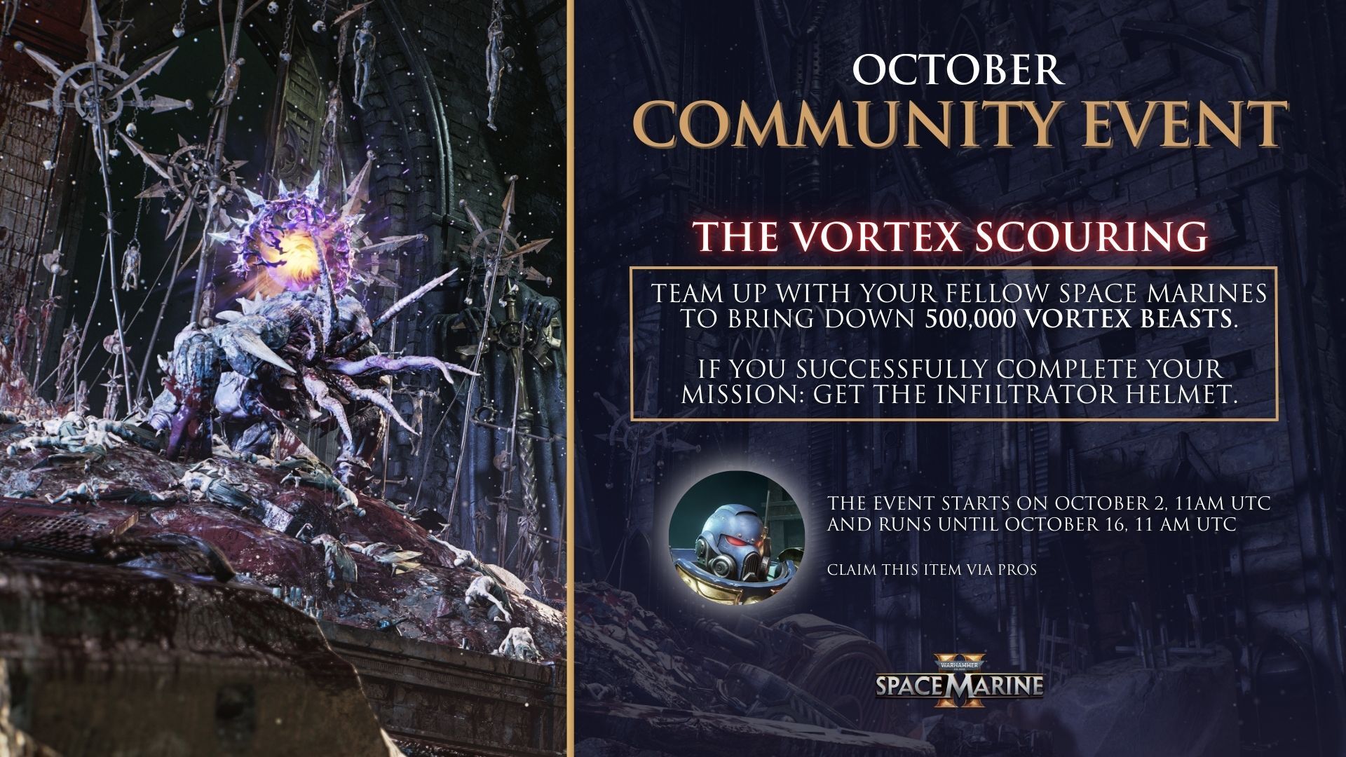 Now, in October, players should get ready for a new community event called “The Vortex Scouring” which runs from October 2 to 16. Players must team up to “collectively bring down 500,000 Vortex Beasts.” The reward will be the Infiltrator Helmet for the Vanguard and Sniper classes.