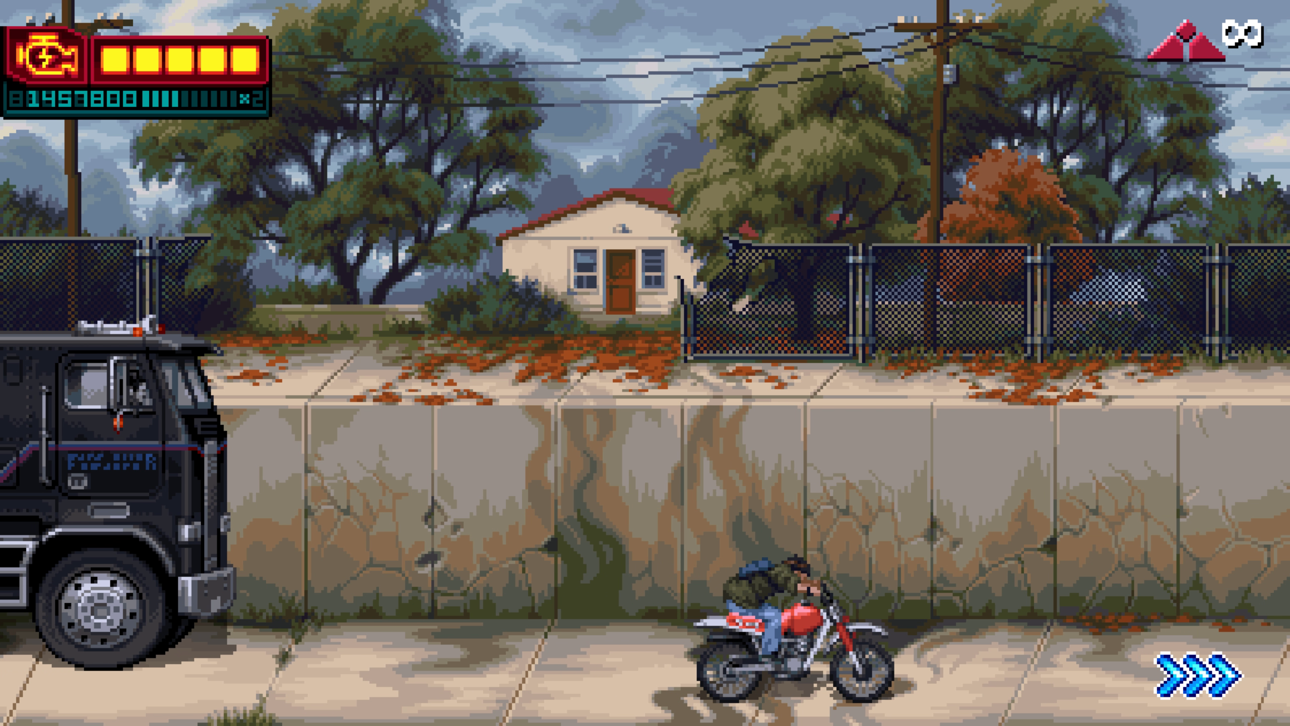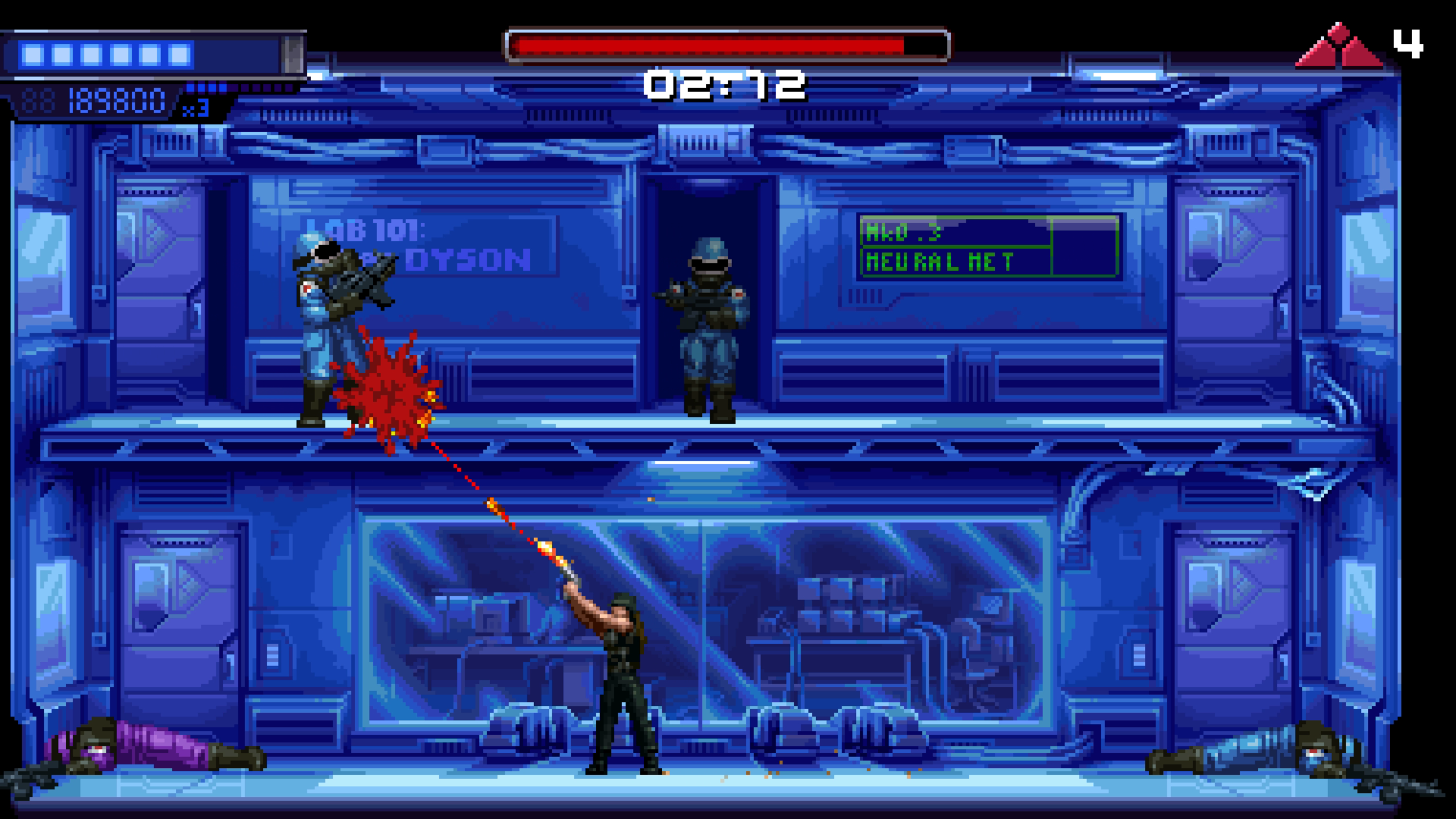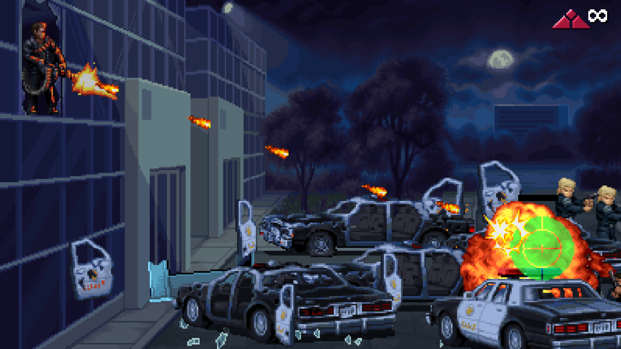 Much like the gameplay, the audiovisual presentation is vintage but not outdated. The pixel art is definitely more complex than something we’d find back in the day, and the animations are so detailed that I was constantly reminded of the excellent Metal Slug series. Likewise, the soundtrack brings back Brad Fiedel’s original compositions while offering refreshing remixes that perfectly fit the relentless action of this game.